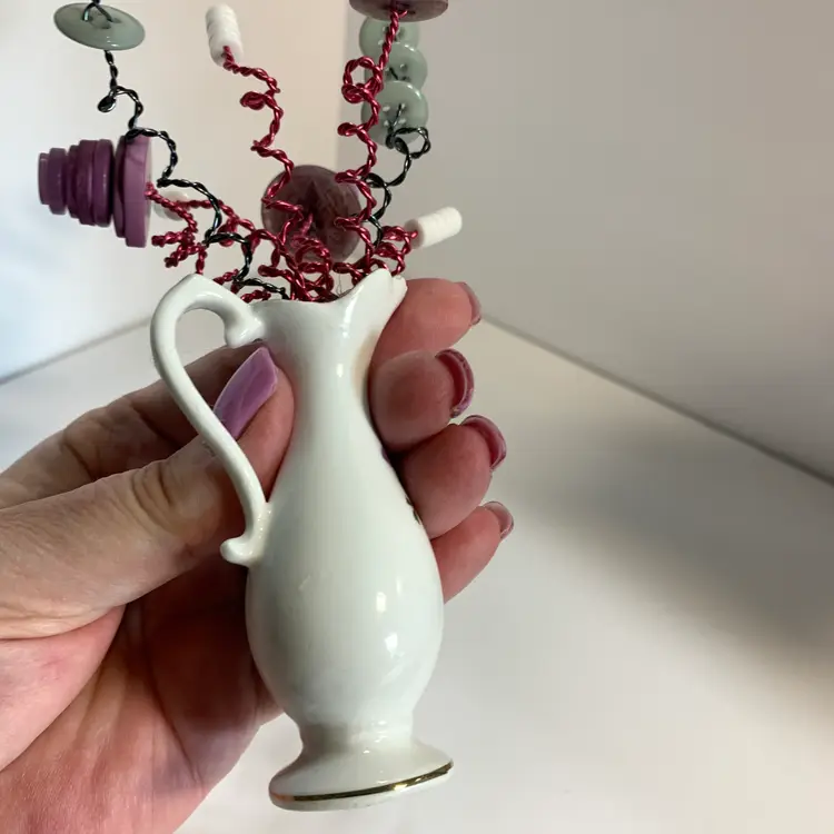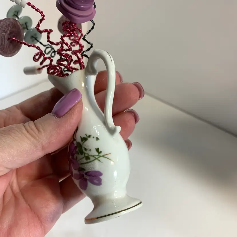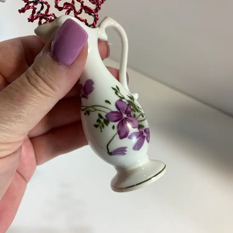 I made this with love. No chips or cracks in the pitcher. Measures about 3 1/4 inches across, 2 1/2 inches wide and 6 inches tall. Weighs 2 ounces. If the actual postage ends up being less than what you paid, you will be refunded for anything over one dollar.