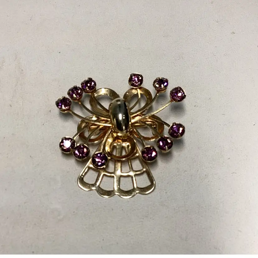 Purple Crystals & Goldtone Brooch 1.5” Danity
