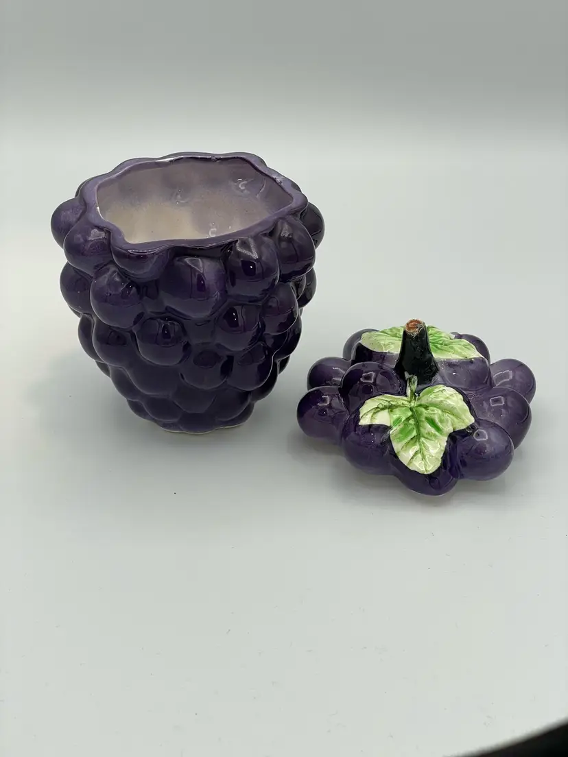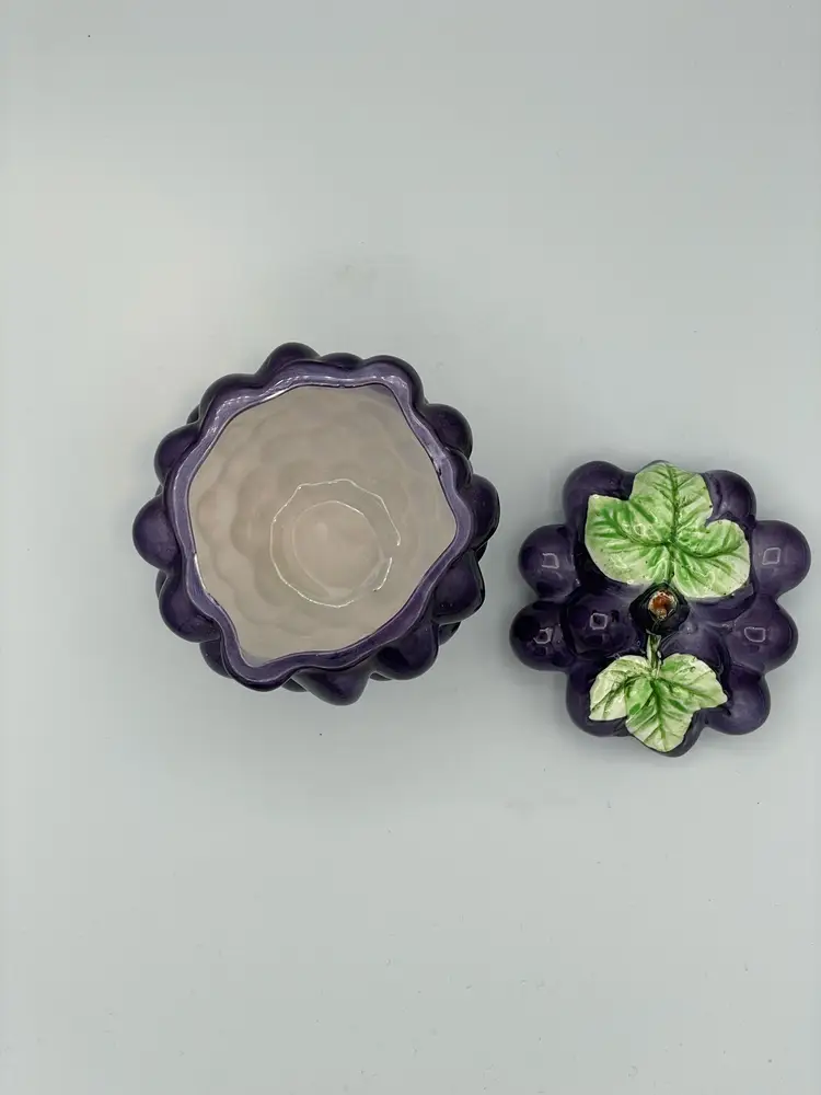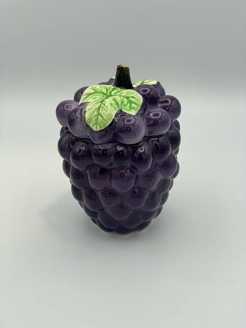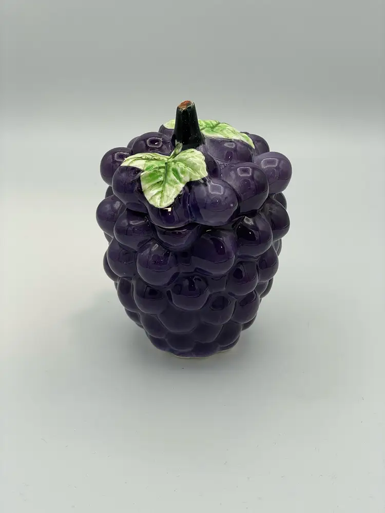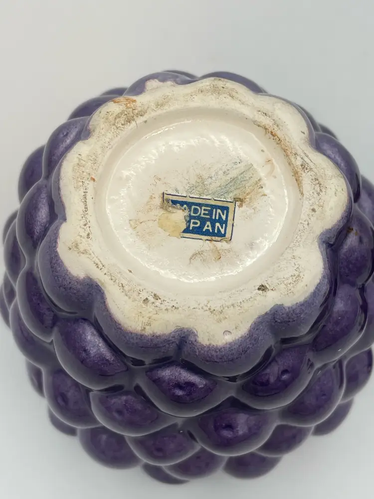 Vintage Ceramic Purple Grape Shaped Jelly Jar Container Covered. In Good Condition. Made In Japan. 5" Tall