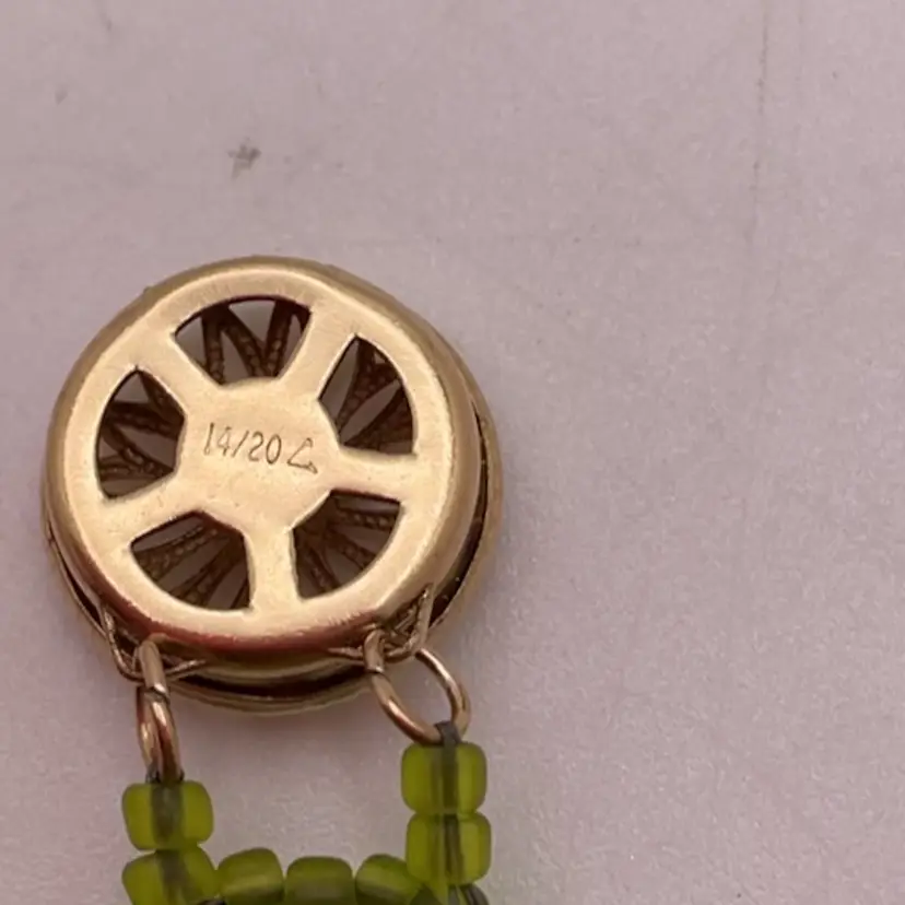 Clasp marked gold filled. From an artist's Estate in Southern California. In addition to beadwork, she was a professional porcelain painter.
