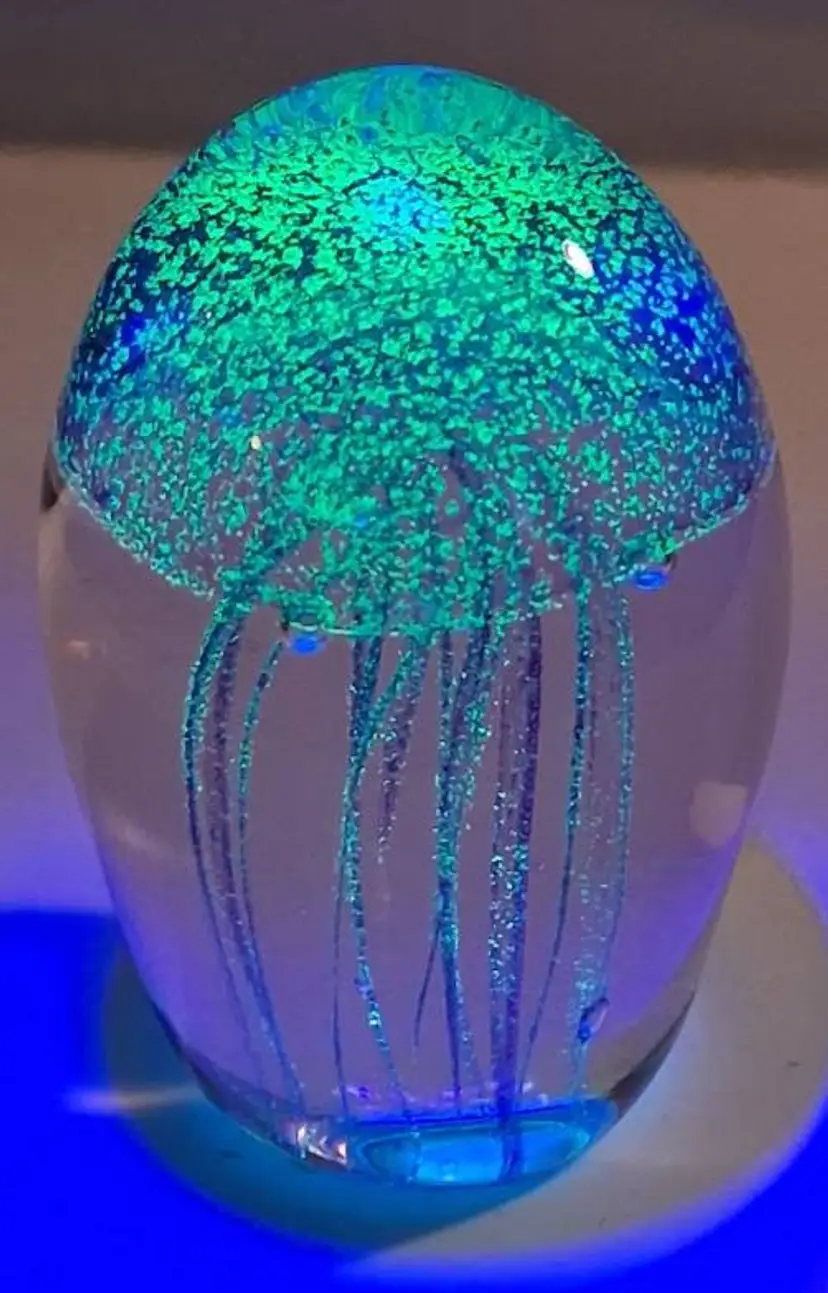 3.1" tall. Glows under UV light or in the dark, after being exposed to light. Great cond!