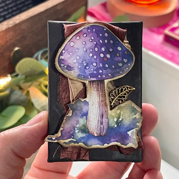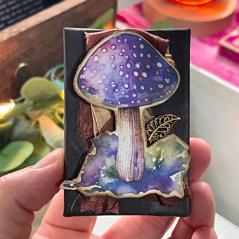 This purple mushroom caught my eye and it just had to be the center of this art piece. Maybe because it's mushroom season in Washington state (or is that even an official thing?) There's a ton of mushrooms in my yard!