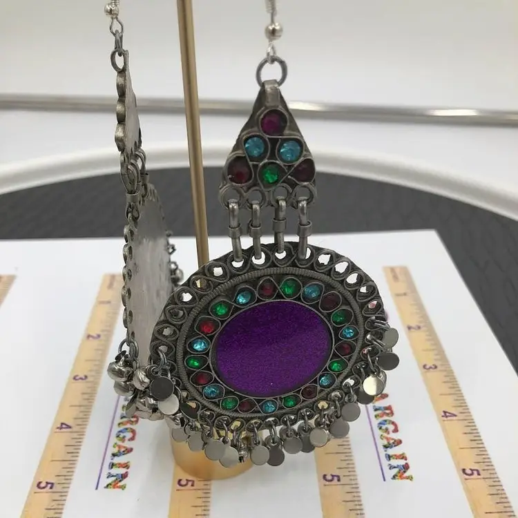 This purple stone glass embedded Afghani kuchi earrings are flaunting all the nomadic vibes. This vintage coin necklace statement is a tribal style ornament, belongs to our exclusive ethnic collection.