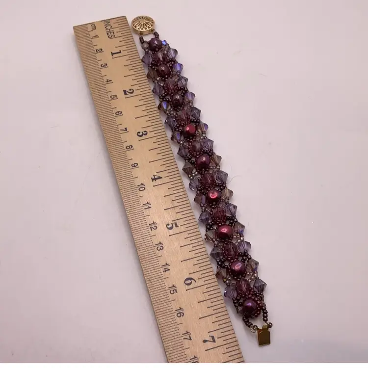 Purple Swarovski Crystal & Pearl Bracelet with Gold Filled Filagree Box Clasp Artisan Made 7”