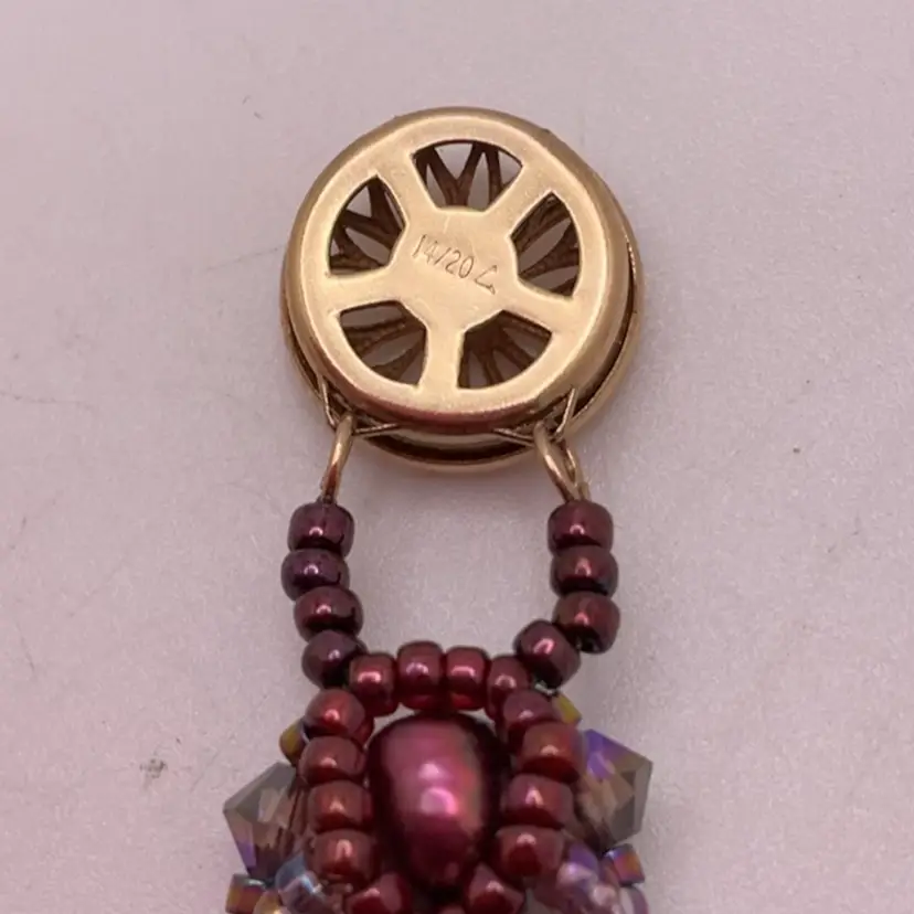 Clasp marked gold filled. From an artist's Estate in Southern California. In addition to beadwork, she was a professional porcelain painter.