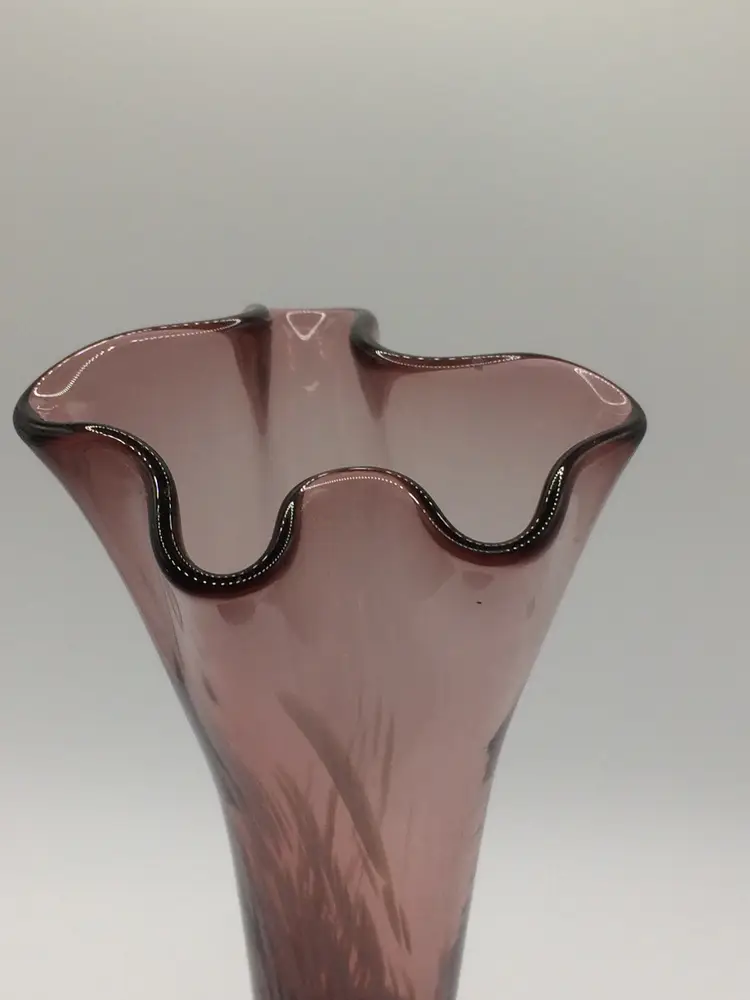 7 1/2" Purple Swirls Swung Vase. NO chips, cracks or flea bites! New to District? Enter code Michel42 into your wallet prior to your first purchase and save $5 off of $10 or more purchase! Thank you for taking a look at my items! Click my Follow Button and I'll Follow you back! Happy Shopping!
