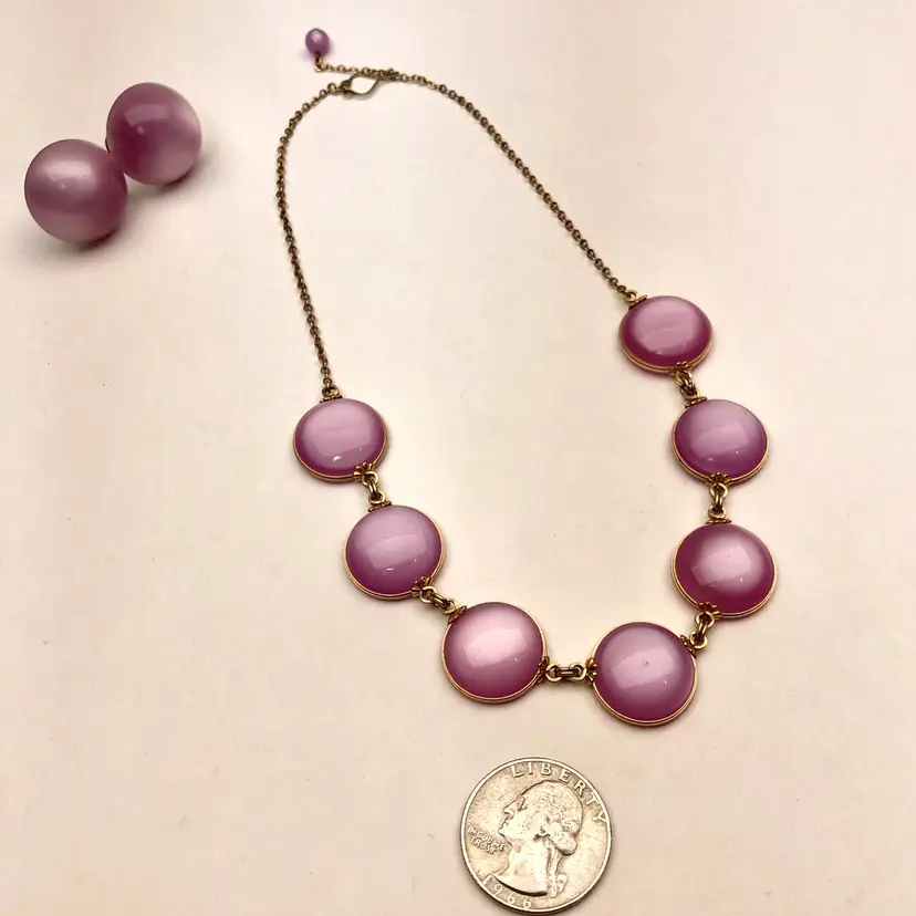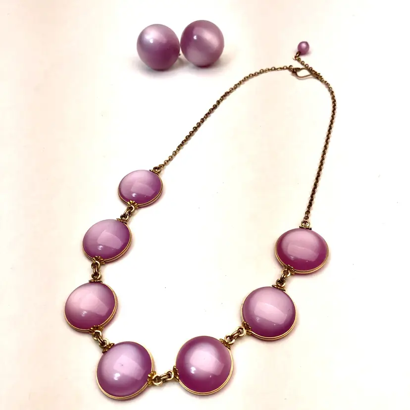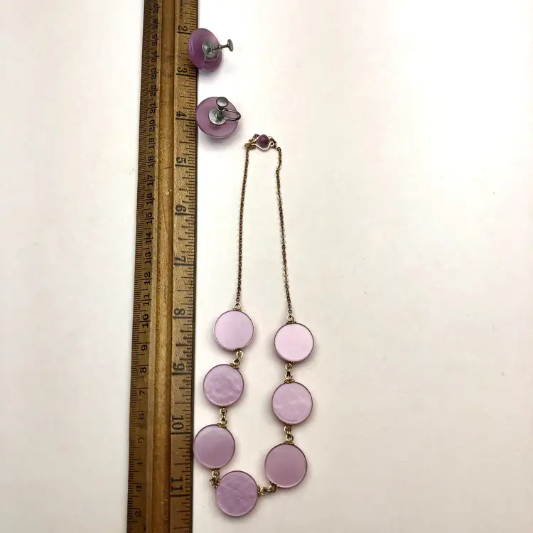 Purple Thermoset Vintage Estate Necklace & Earring Set. Purple curved Thermoset matching vintage necklace & screw back vintage earrings. Stunning vintage jewelry Set. MN6H.