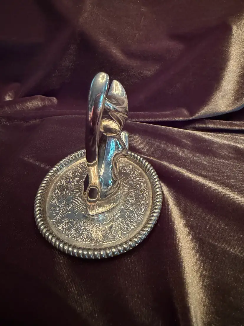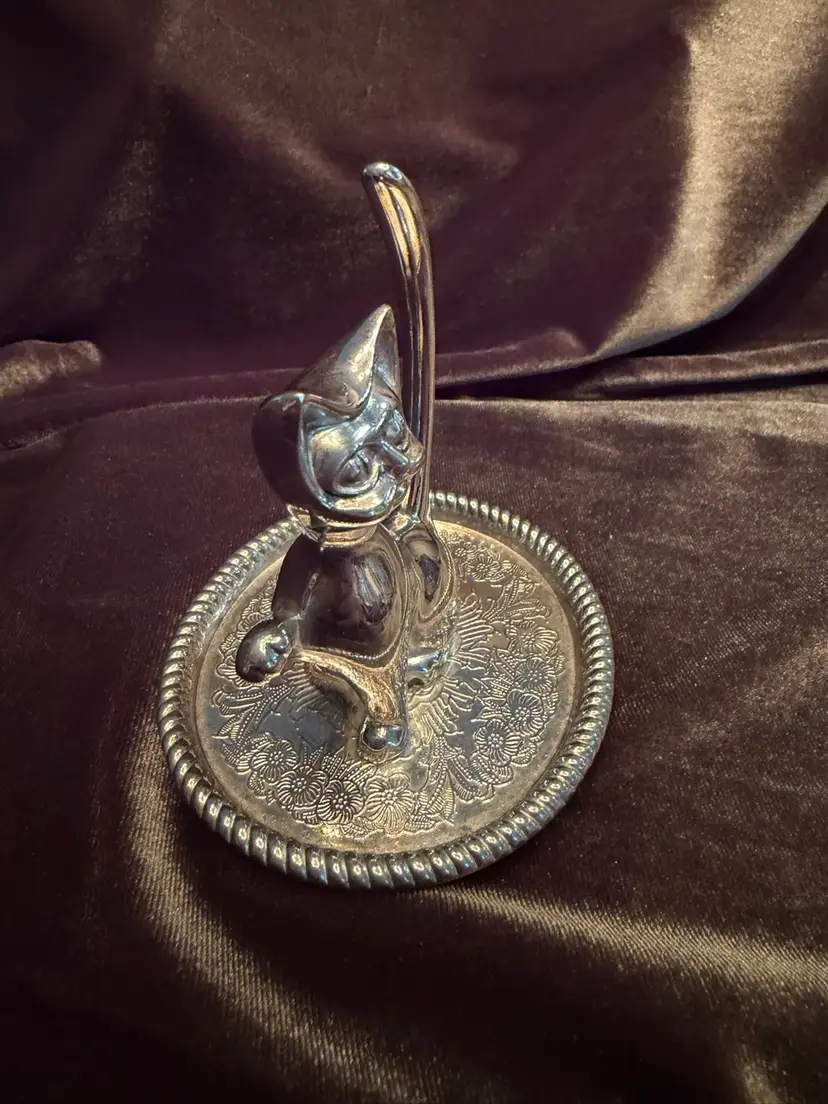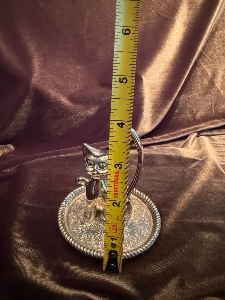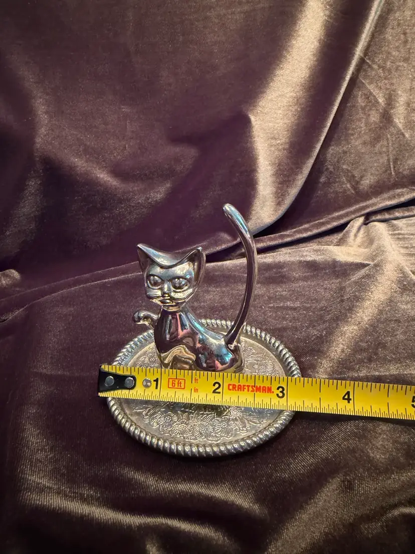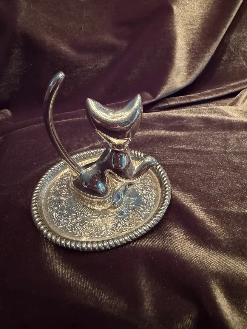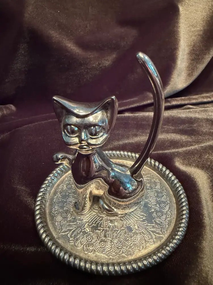 Purrfect Vintage Silver Plated Kitty Cat Animal Ring Jewelry Holder tray