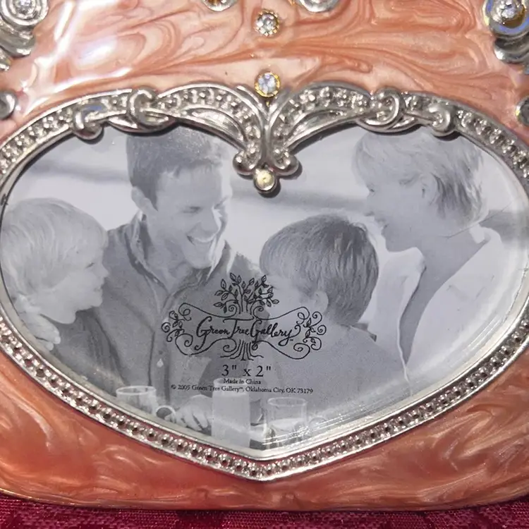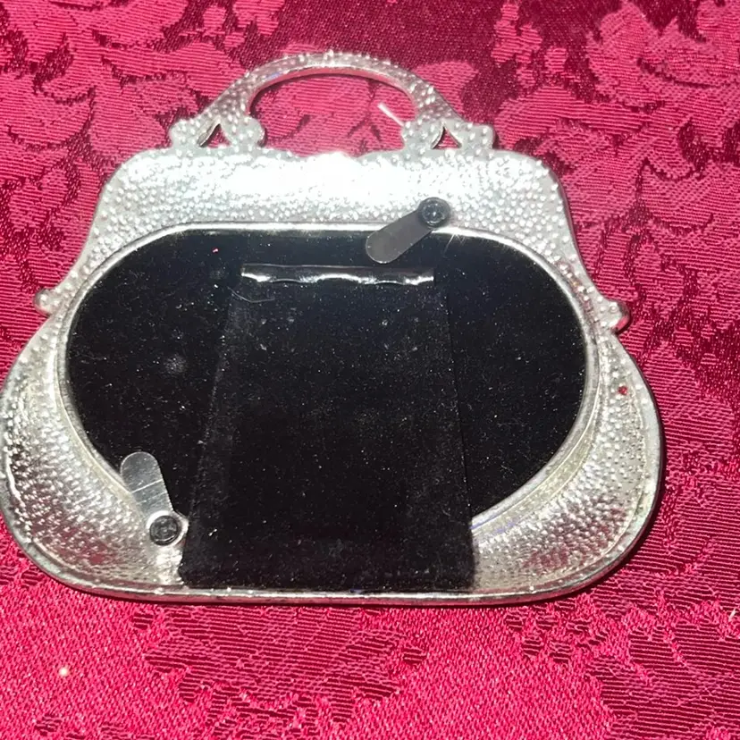 This is a Mikasa Rosemont picture frame that is shaped like a purse with a heart-shaped photo opening and is accented with crystals. I have three of these.