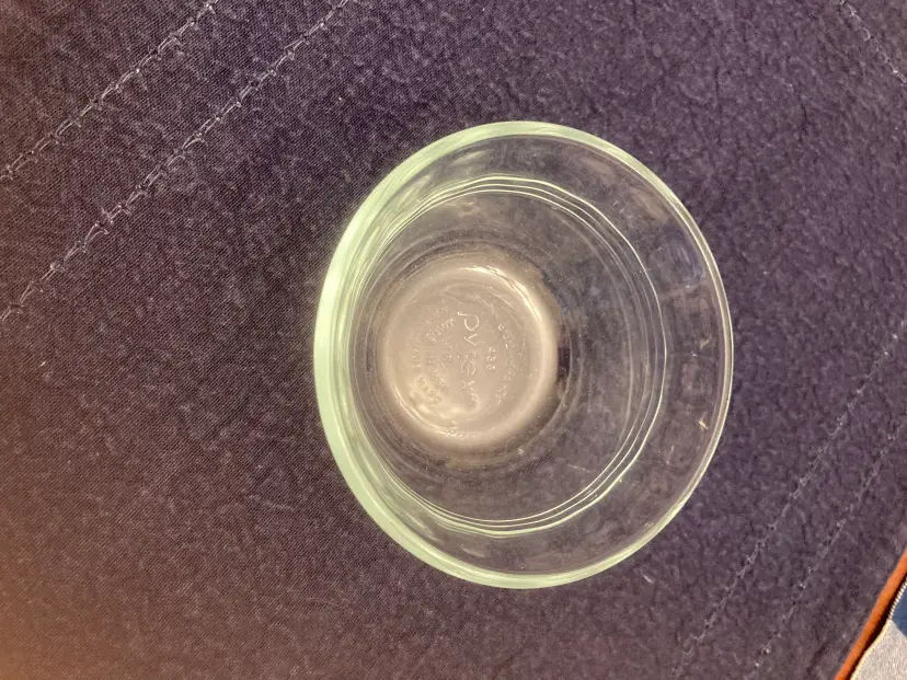 Pyrex 463 Clear Glass Custard or Ramekin Made in USA 6 oz - 175 ml, 4" wide by 2" tall No chips or cracks, but typical minor scratching wear and tear for items made and used daily. Smoke Free but Corgi Friendly Home Bin 3