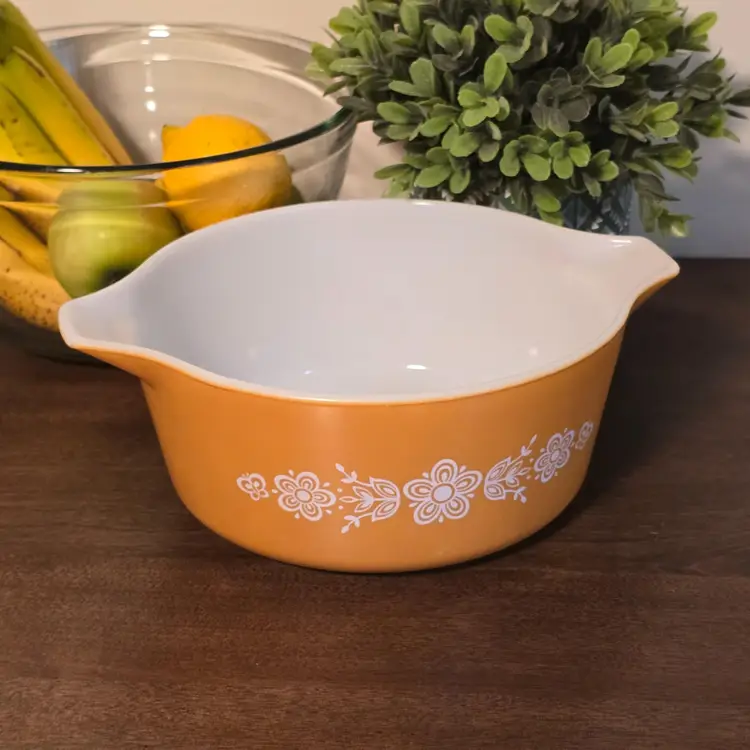 Pyrex 475-B Butterfly Gold Orange 2 1/2 qt Casserole Dish Mixing Bowl Vtg No Lid