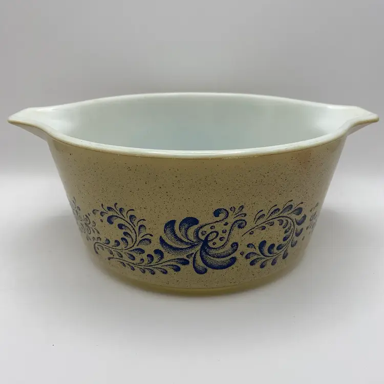 Pyrex 475-B Casserole Homestead 2.5 Quart Vintage Blue Tan No Lid