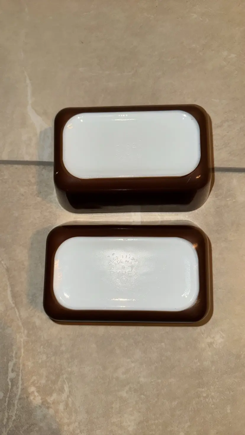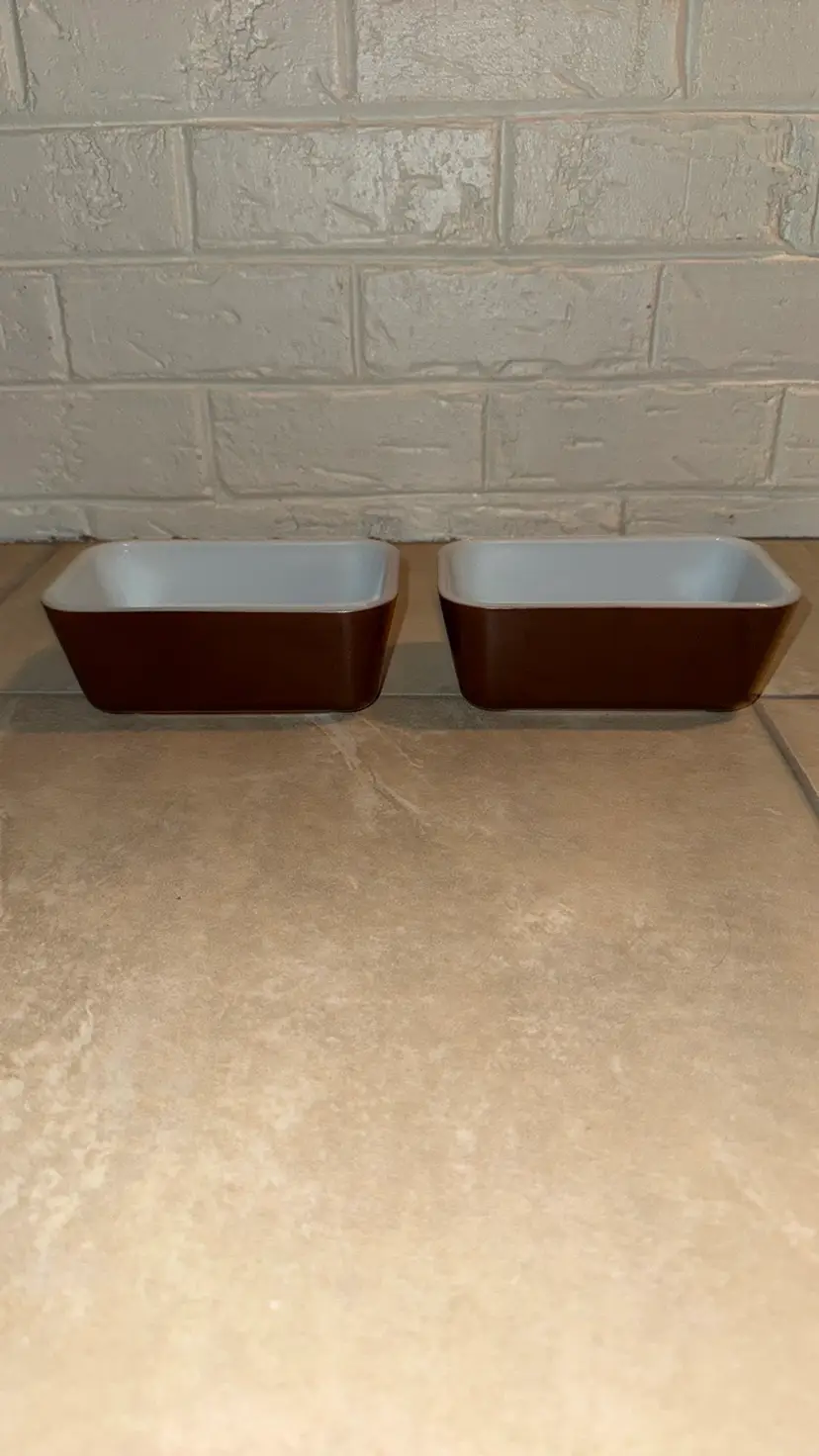 Pyrex 502 1-1/2 Pt. Brown Refrigerator Dishes set of 2 No Lids 6.75” by 4.25” by 2.75” Excellent condition no breaks or chips (161217248)