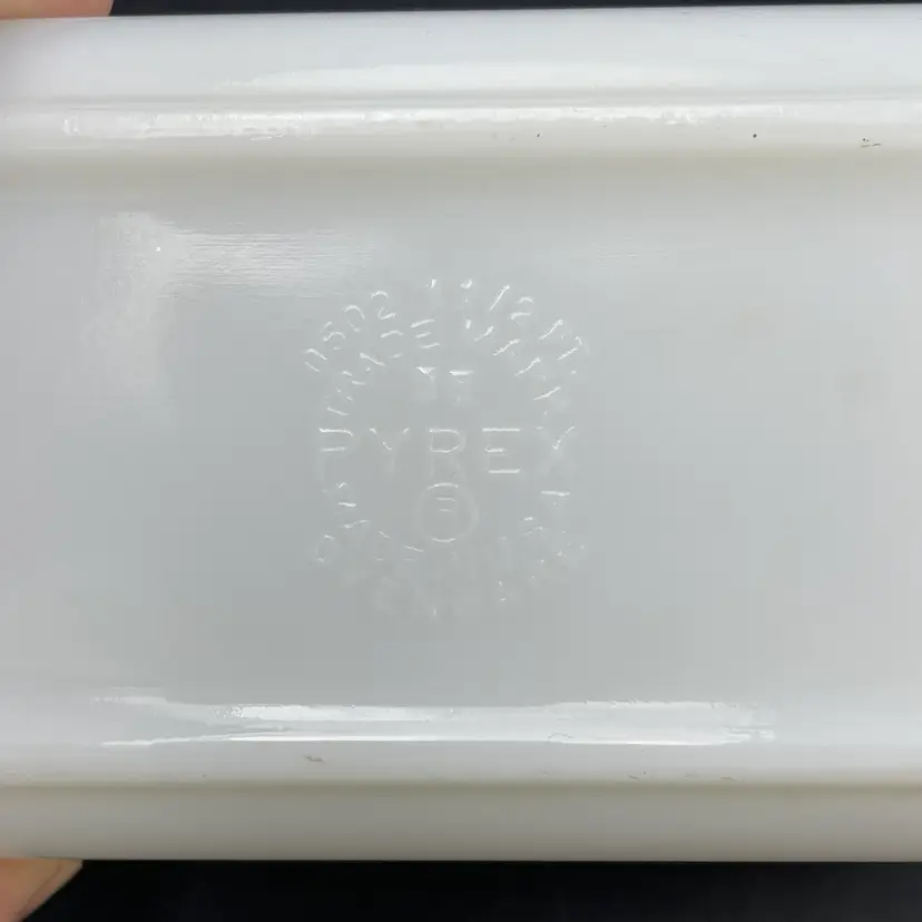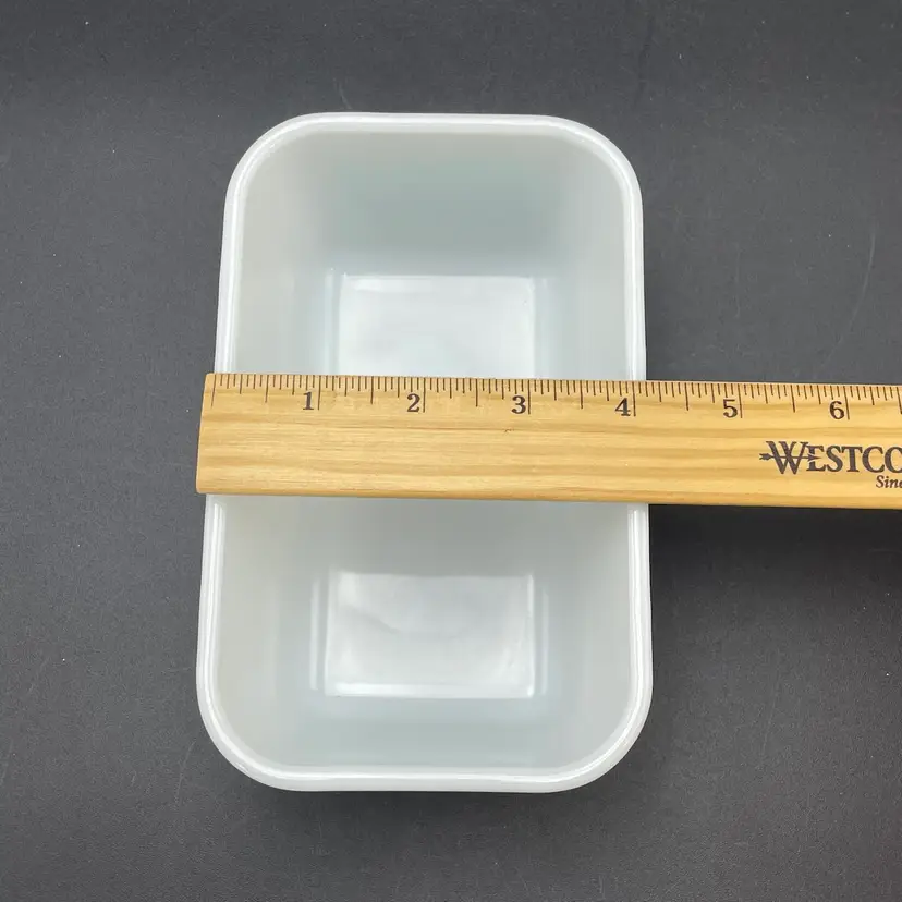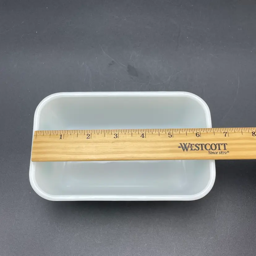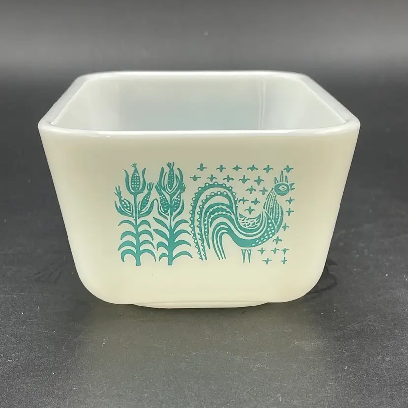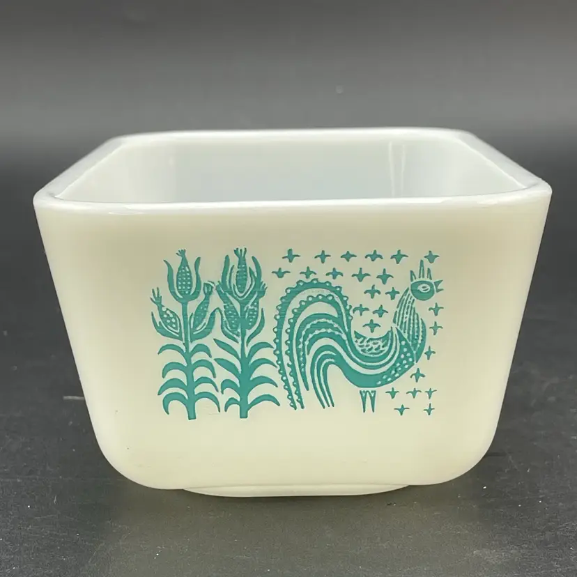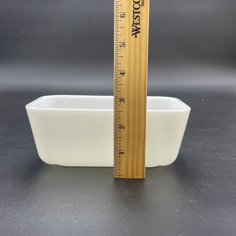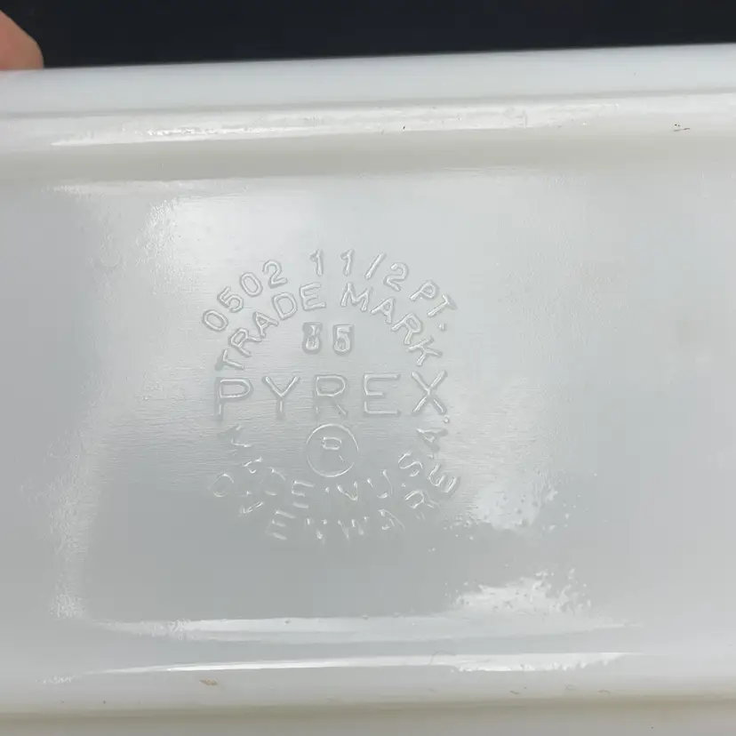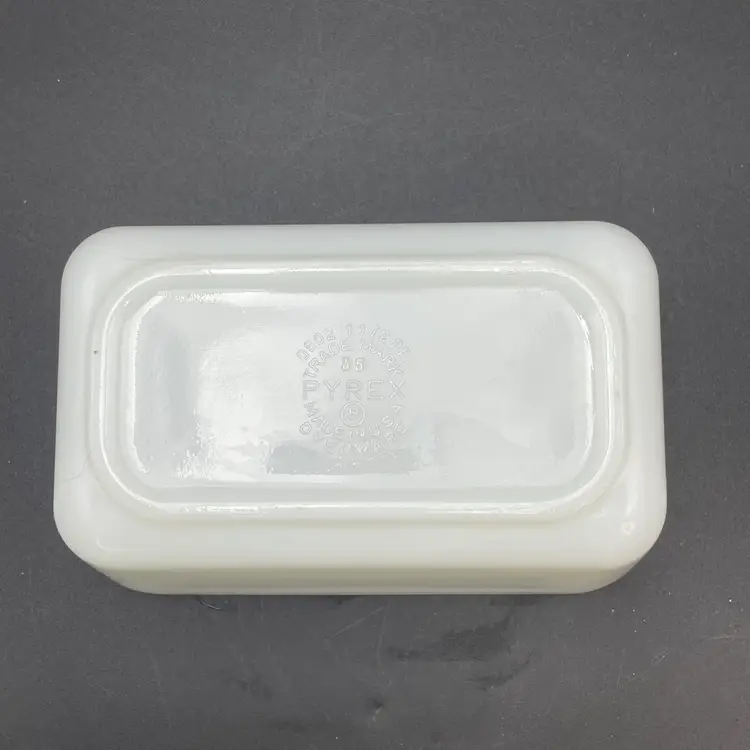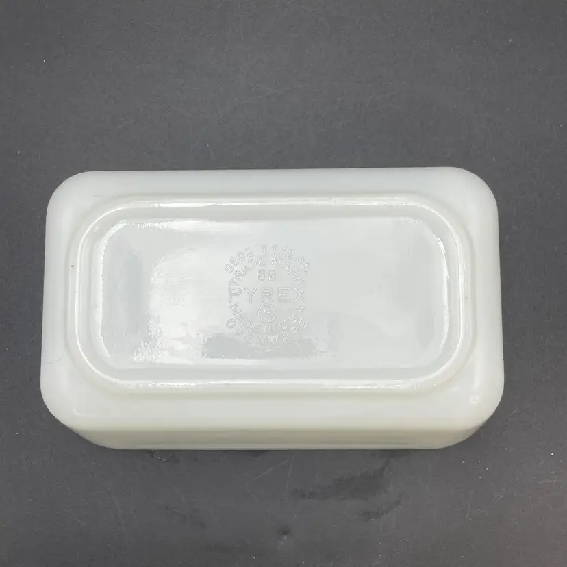 This is a vintage Pyrex #502 Amish Butterprint 1 1/2 pint refrigerator dish. NO LID. Marked on the bottom. Measures approximately 2.5" deep x 6.5" long x 4" wide. No chips or cracks.