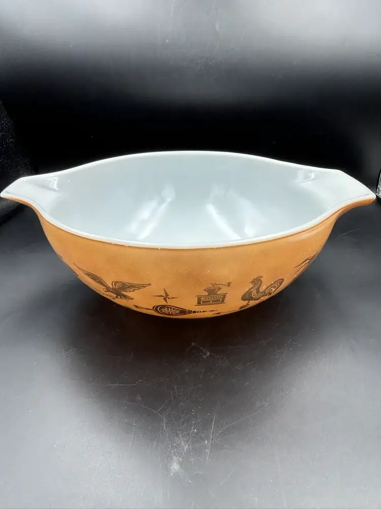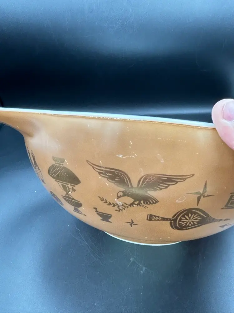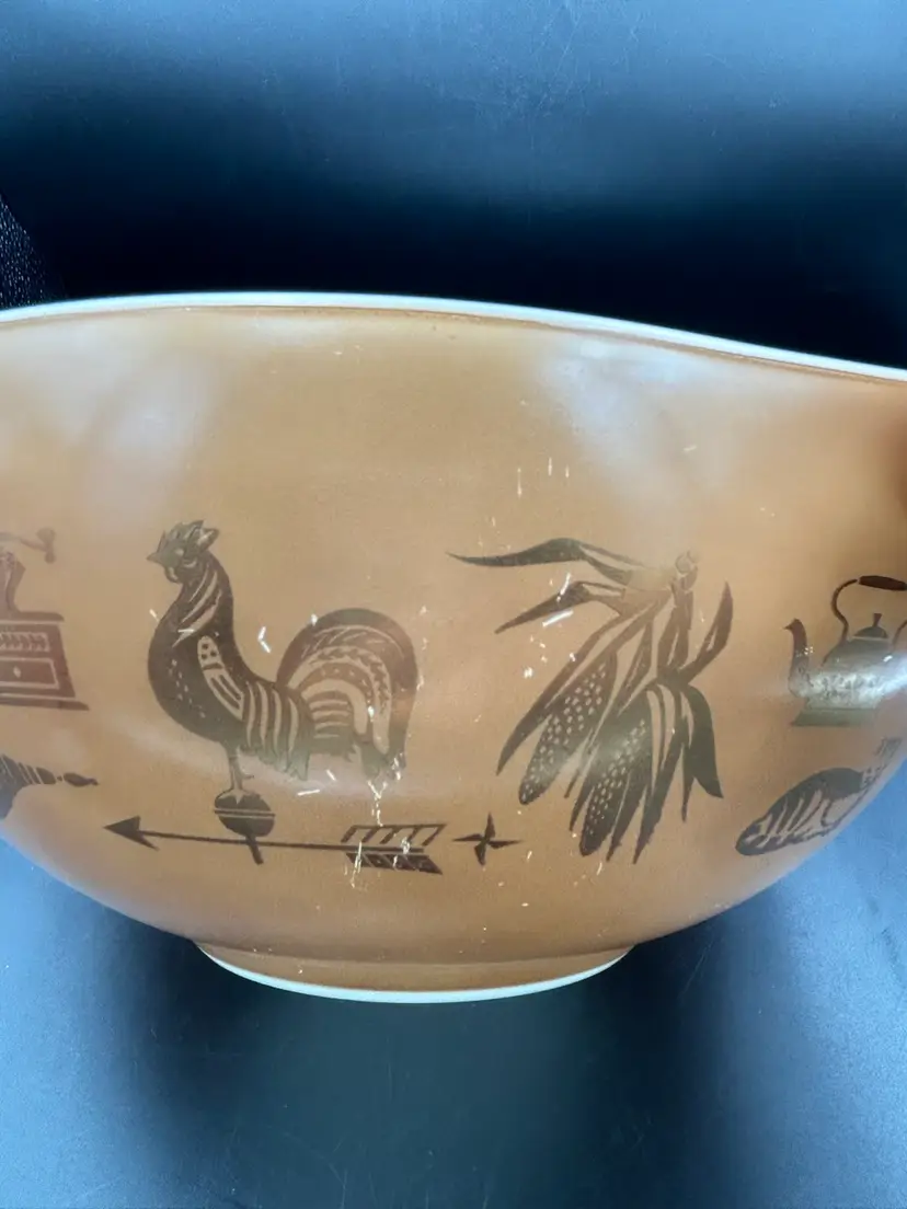 Vintage age related scratching and minor paint loss on outside. No chips or cracks. See pictures.” Handled to handle.X4.5H
