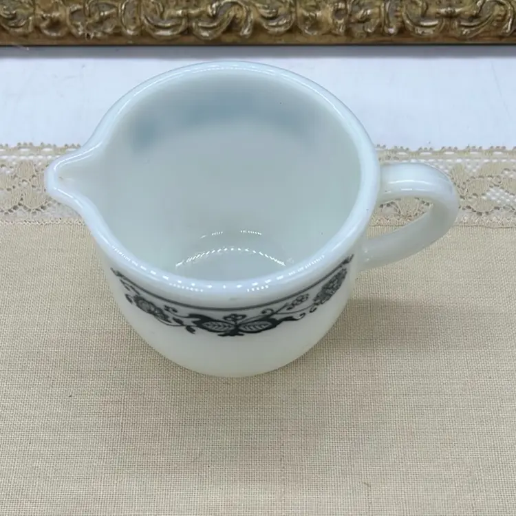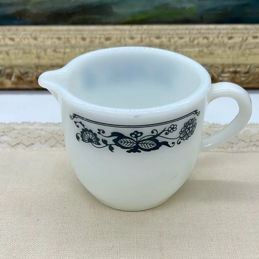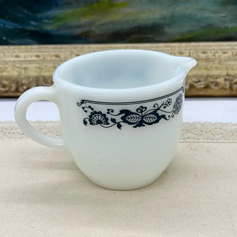 Adorable Vtg Pyrex creamer. No chips or cracks. Lovely blue floral pattern