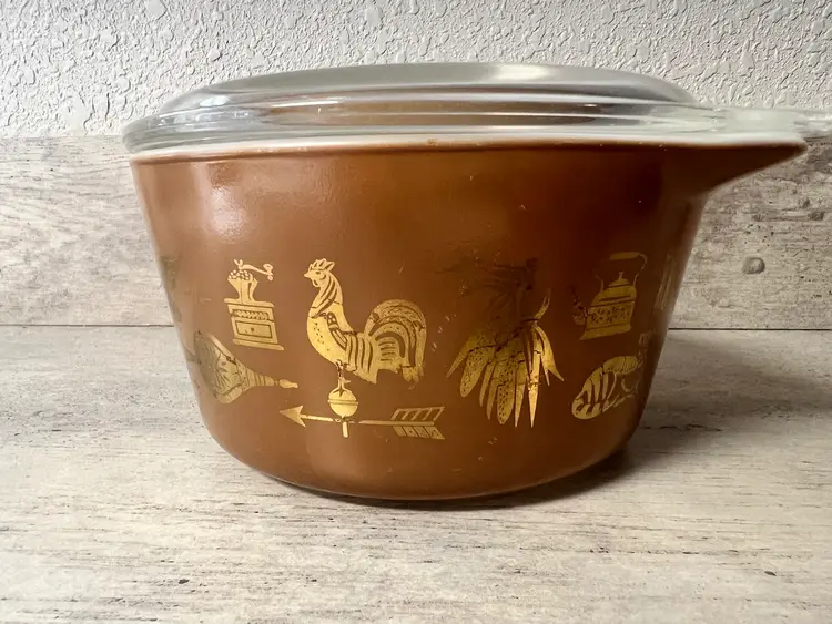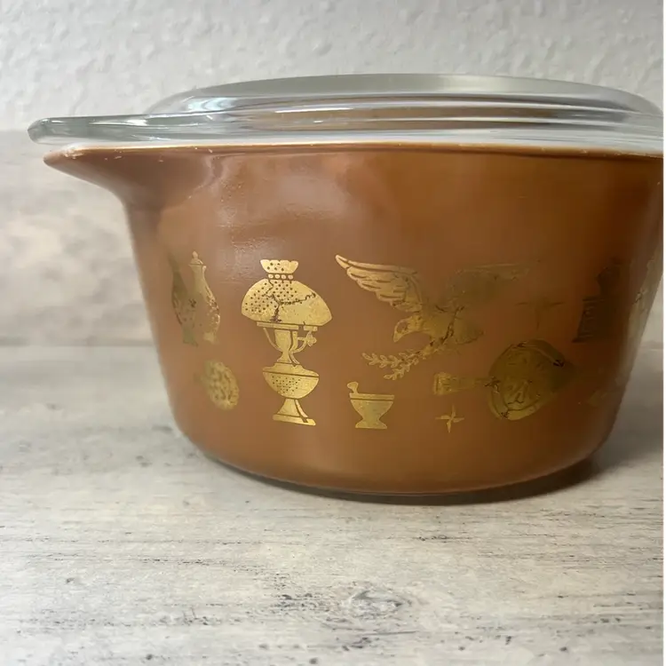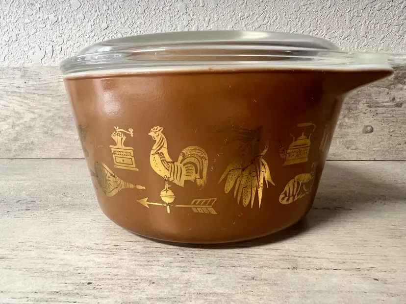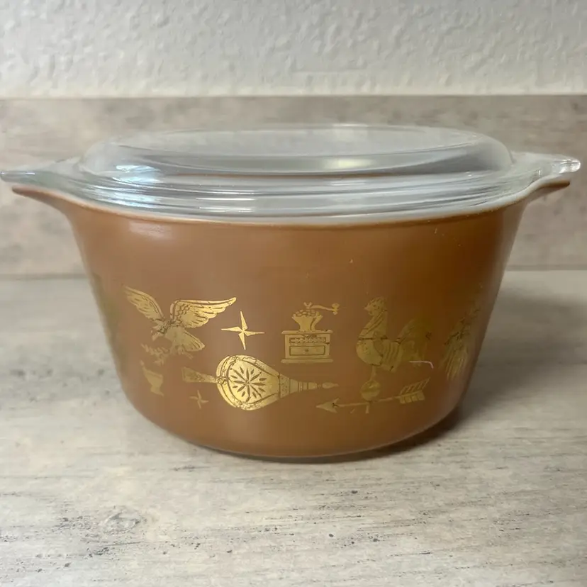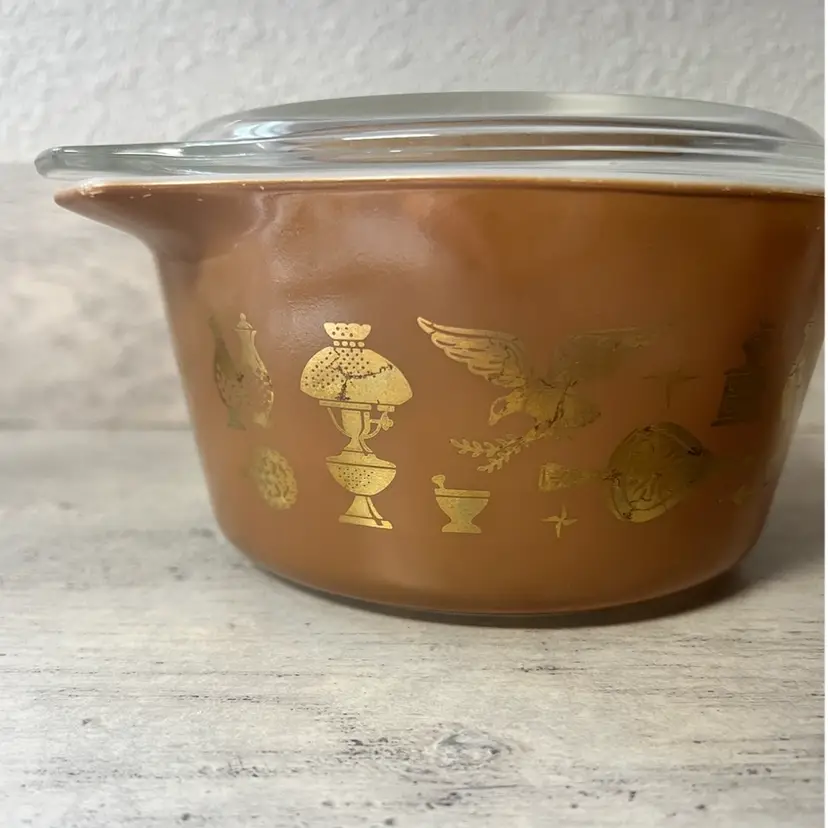 1 QT #473, lid #470 6.5” diameter, 3.5” height
