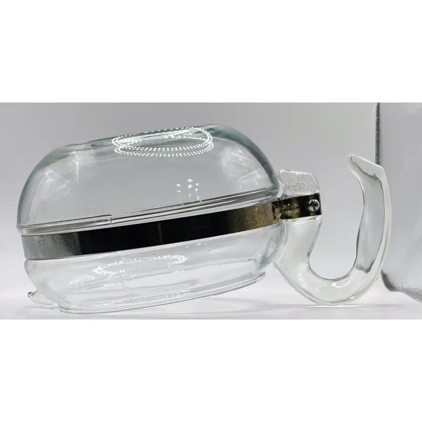 Tea pot holding 6 cups and is meant to be used on the stovetop. No chips or cracks.