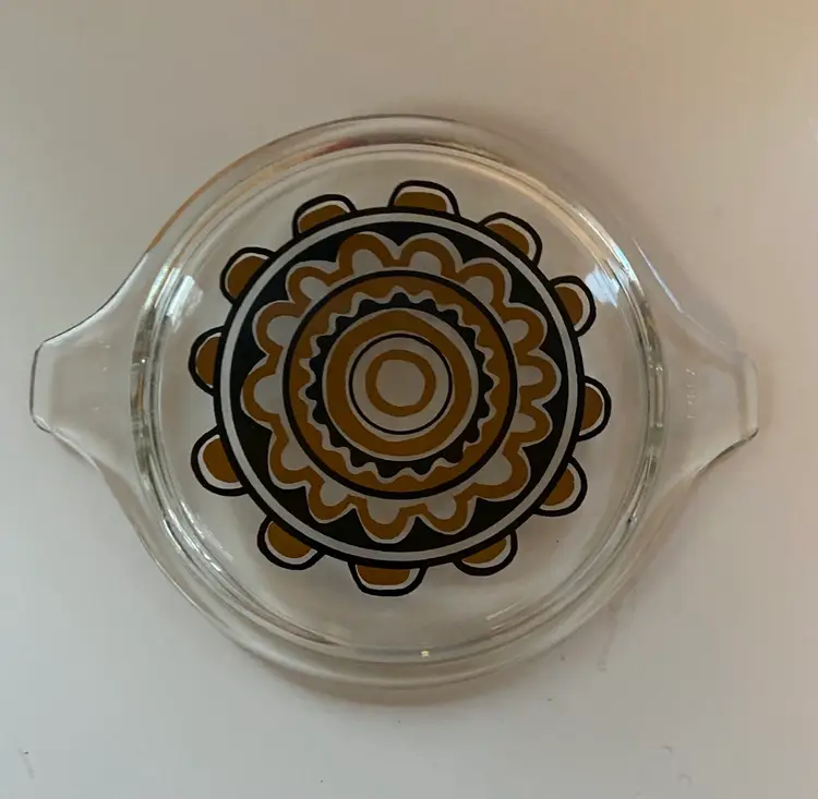 Sale is for lid only for a Pyrex Sol Flower round casserole, this item was a promotional pattern between 1968 to 1969. Actual casserole is not included. Lid isn’t good condition.