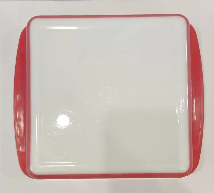 No chips or cracks. Slight fading of the color on side and some marks on inside edges where the handles are (please see photos). Measures 8"x2". #222. Made in the USA in the 1950s.