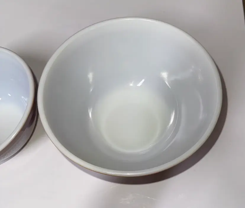 Pyrex WOODLAND BROWN Mixing Bowls 1.5 lt. #402 7.25” diameter 3.5” tall #401 750 ml 5.5” diameter 3.25” tall No breaks or chips very minimal scratches almost new excellent (1462126a)