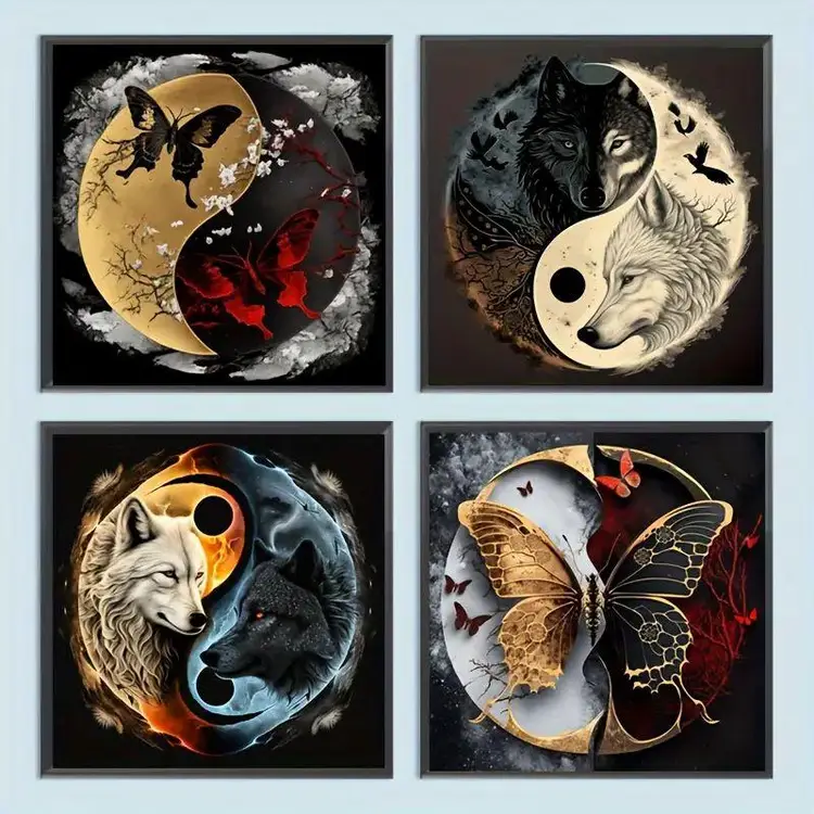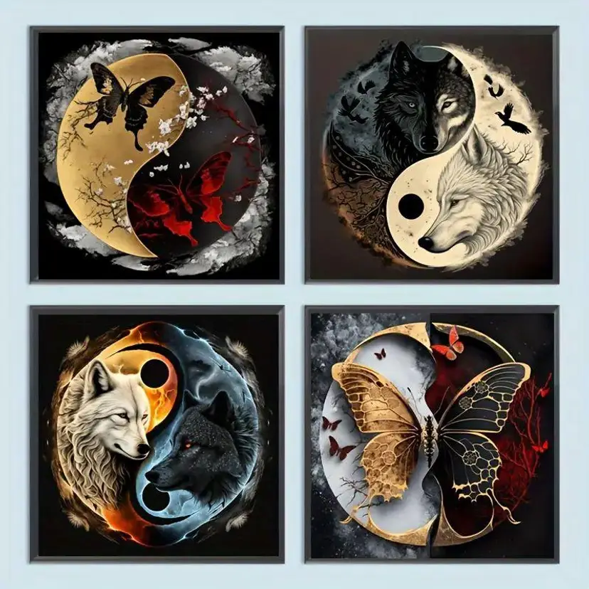 Q224-1,2,3,4 - 20X20cm Set of 4 Kits - Butterfly and Wolf Yen Yang