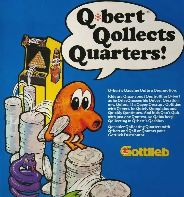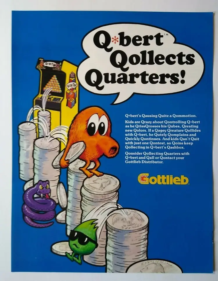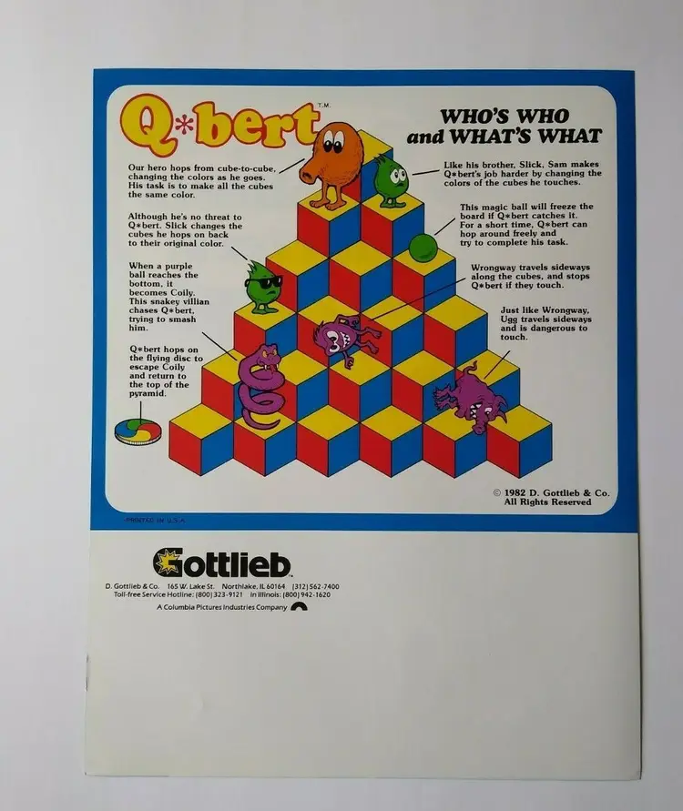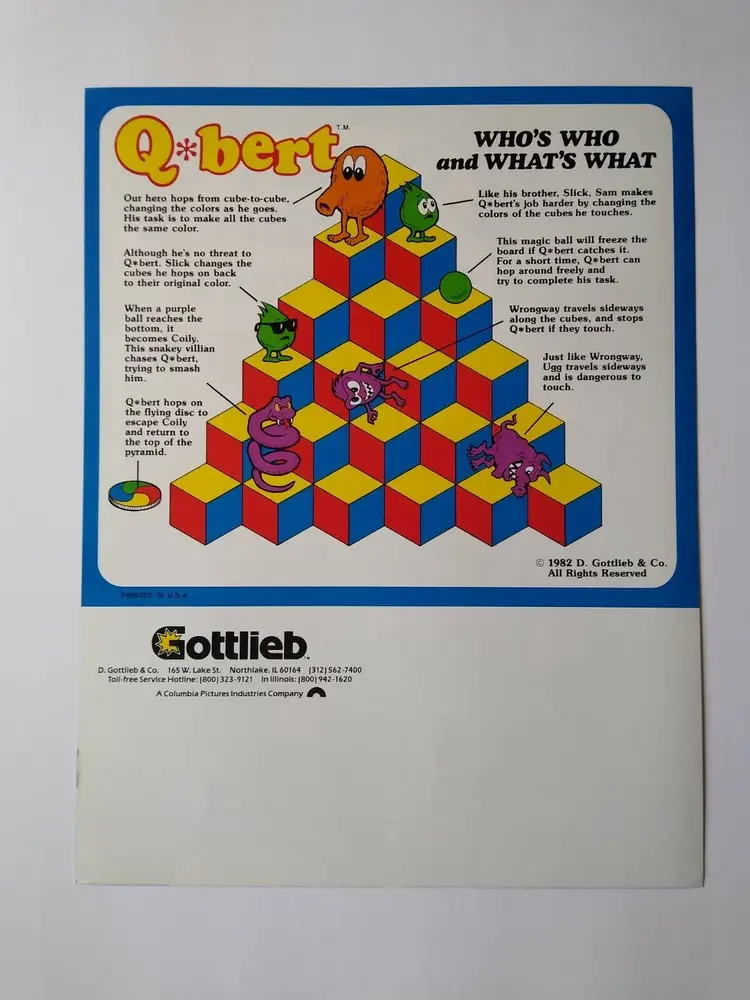 Vintage: Paper Advertising Flyer Arcade: Flyer Modified Item: No Country/Region of Manufacture: United States Original/Reproduction: Original Year: 1982 Game Title: Q*Bert Brand: Gottlieb