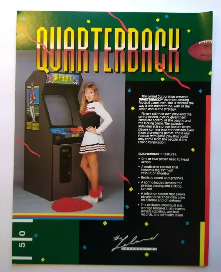 Arcade: Flyer Theme: Sports Modified Item: No Country/Region of Manufacture: United States Original/Reproduction: Original Subject: Football Year: 1987 Game Title: Quarterback Brand: Leland