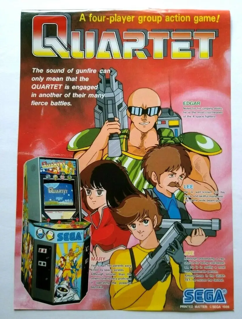 Arcade: Flyer Theme: Retro Gaming Modified Item: No Country/Region of Manufacture: Japan Original/Reproduction: Original Year: 1986 Game Title: Quartet Brand: Sega