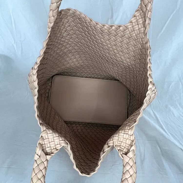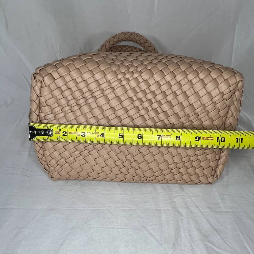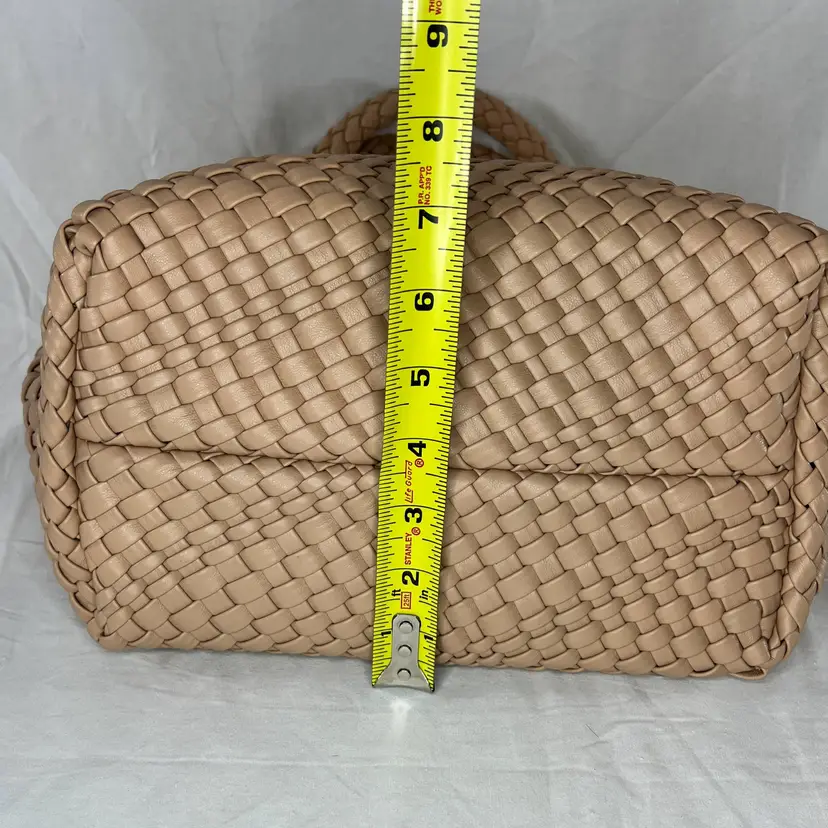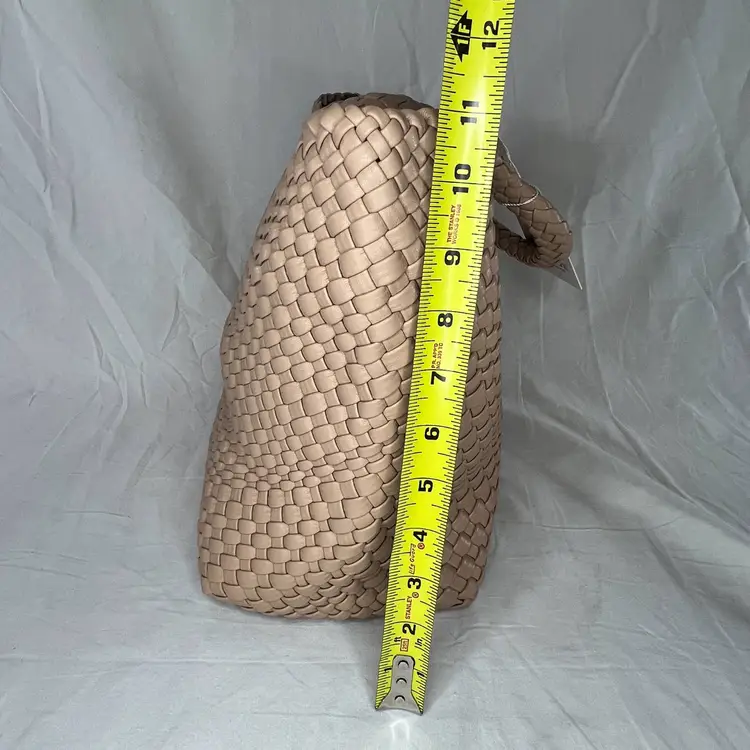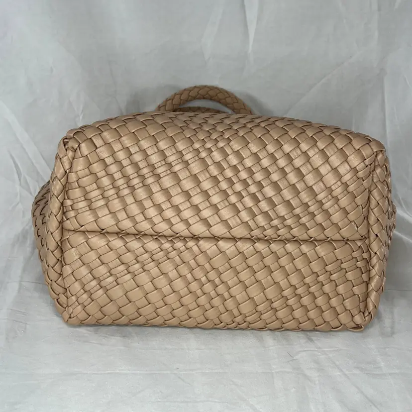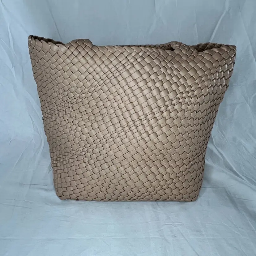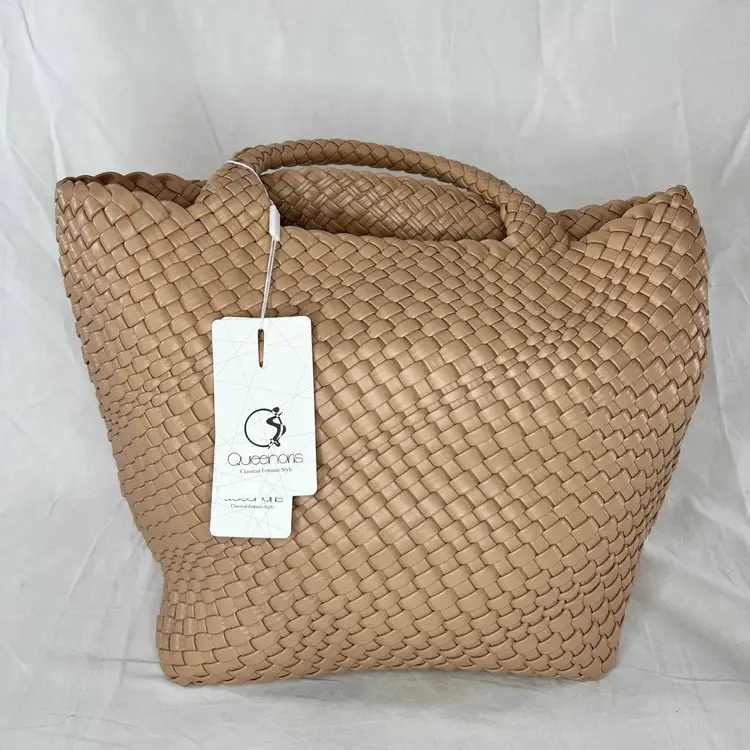 Details: Brand: Queenoris Style: Woven tote / handbag Color: Tan / nude Material: Faux leather (woven) Handles: Double top handles Condition: New with tags Size: Medium-large tote (see photos for scale) Closure: Open top (no zipper visible)