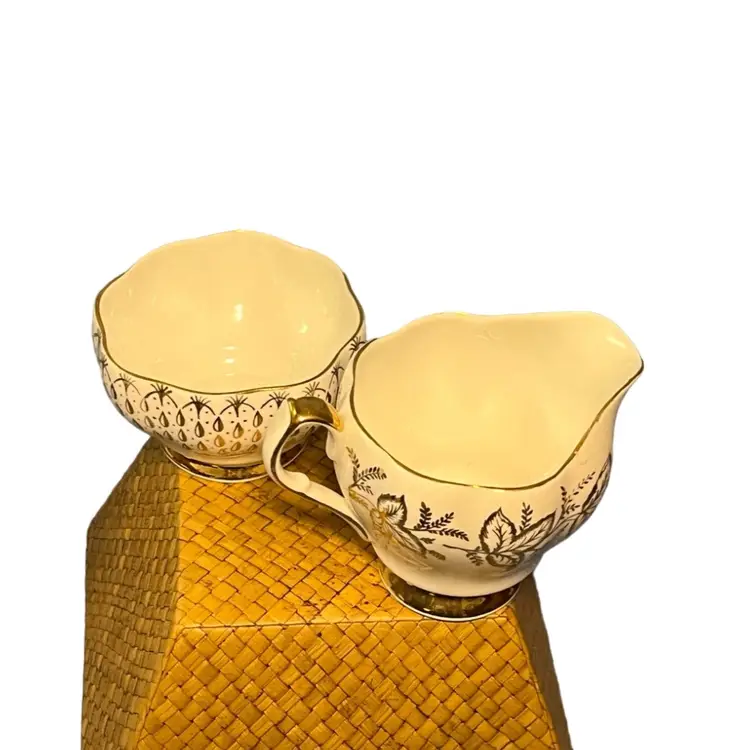 Vintage, bone china, made in England. Sugar bowl 3”w x 2”h. Creamer 4”w x 3”h