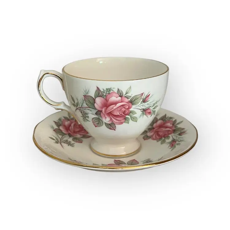 Queen Anne Bone China Tea Cup and Saucer, with Pink Roses.