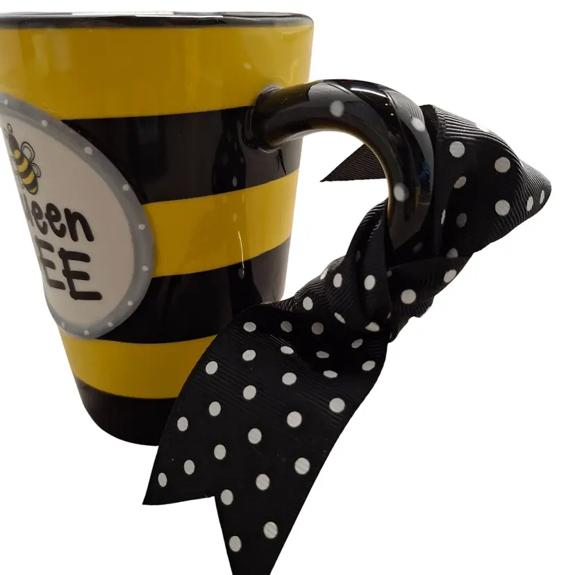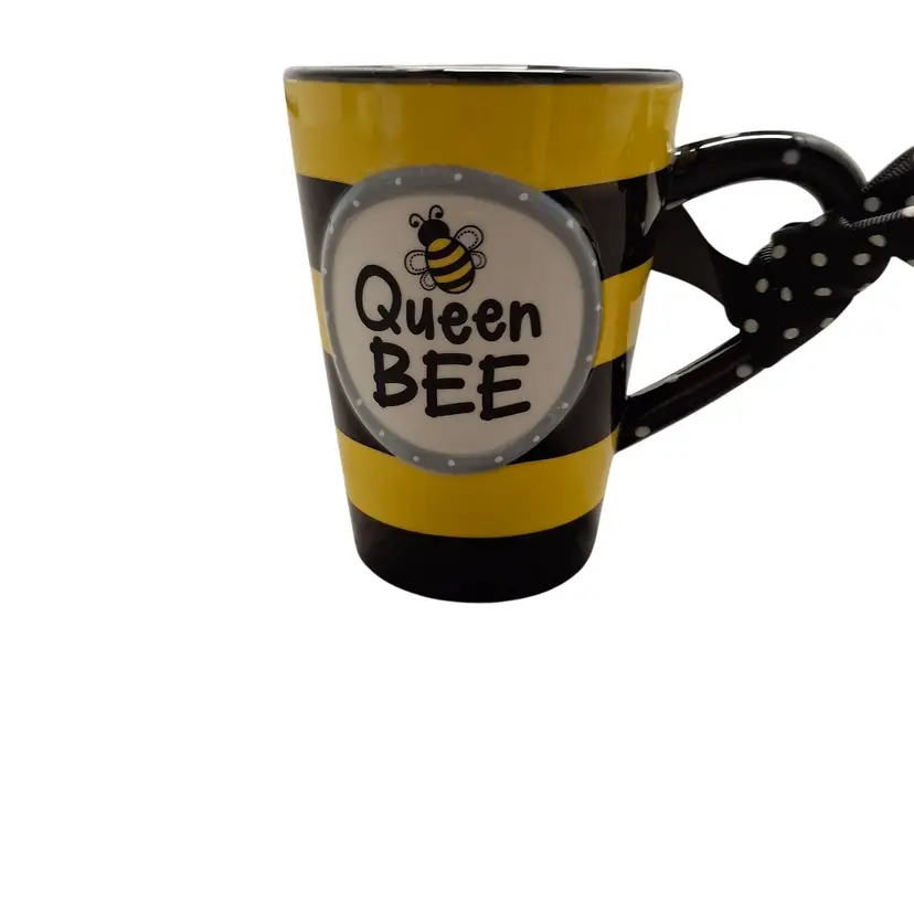 This charming Queen Bee mug invites you to start your day with a buzz of cheer. Its bold black and yellow stripes, polka dot ribbon detail, and playful bee design create a whimsical yet functional piece. From morning coffee to evening tea, this mug adds a sweet touch to your routine.