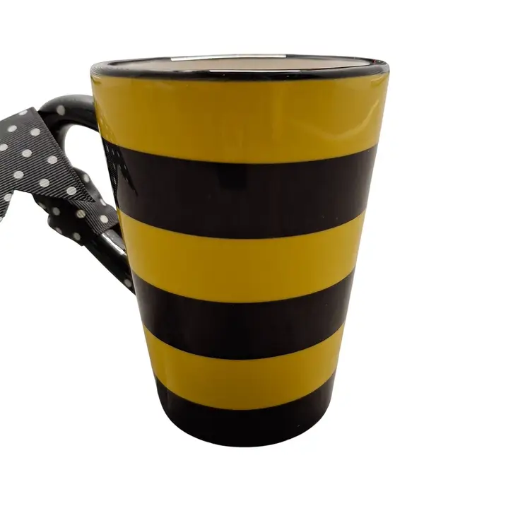 Queen Bee Striped Ceramic Mug With Polka Dot Handle Ribbon Design Burton+Burton