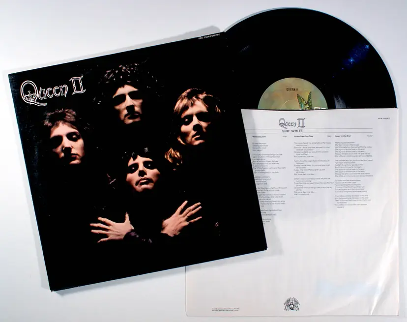 Queen II, by Queen, released in March 1974, is the second studio album by the British rock band, showcasing their evolving sound with intricate harmonies, layered instrumentation, and theatrical flair. The album is notable for its conceptual structure, divided into "Side White" and "Side Black," reflecting contrasting themes and influences, with Freddie Mercury and Brian May contributing most of the songwriting. It marked a significant step in Queen's artistic development, blending progressive rock with heavy metal and glam elements, setting the stage for their later commercial breakthroughs. Historically, Queen II is recognized for its bold experimentation and for introducing Queen's signature multi-tracked vocal harmonies, which became a hallmark of their style. The album included the hit single Seven Seas of Rhye, which reached No. 10 on the UK Singles Chart, becoming Queen's first chart success.
