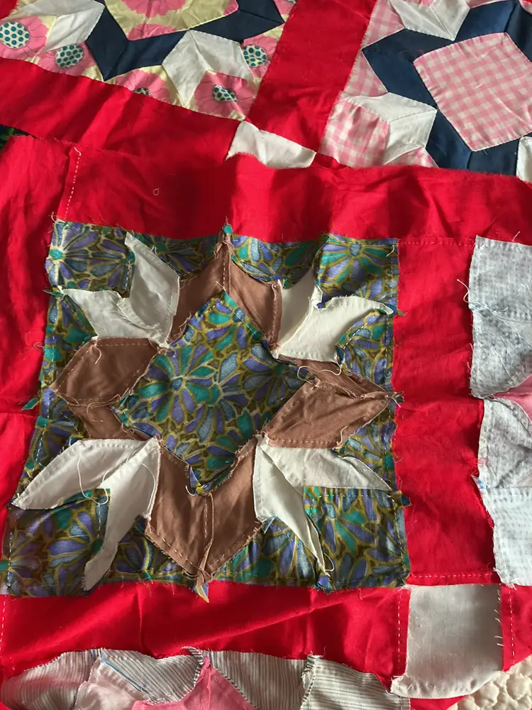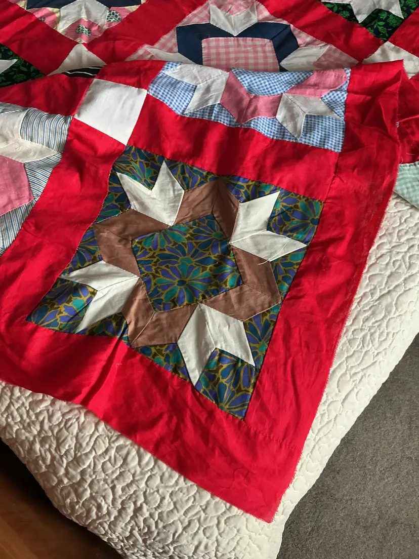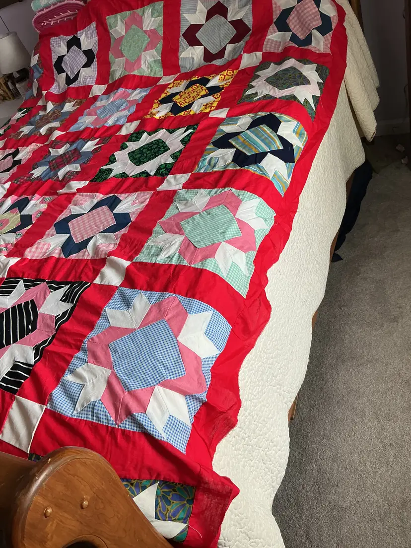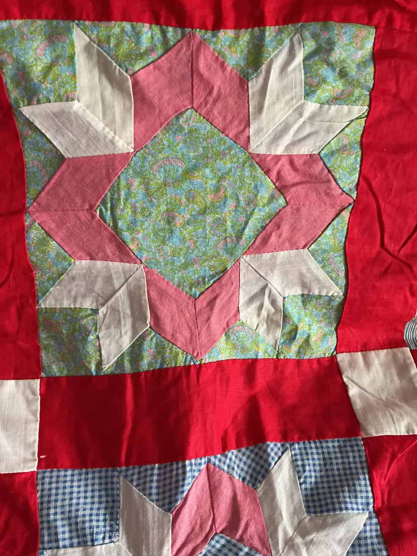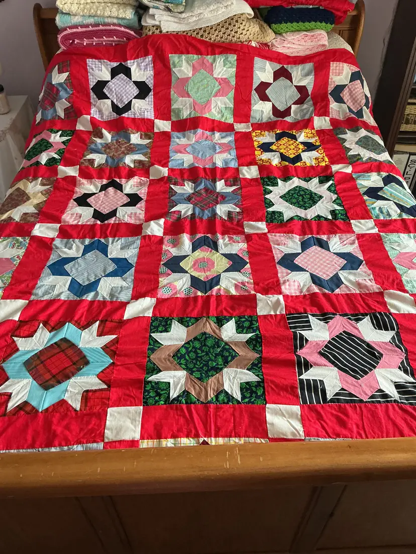 NOTE: price is for topper and shipping, as is. If you are interested in me finishing the quilt, I can do that. This would be machine quilted with an agreed upon pattern. Completed/Finished price would be $275-$350 + shipping, depending on complexity of finished quilting design. Completed price includes 100% cotton batting, backer fabric, binding, long arm machine rental and all labor. If you’ve ever made a quilt, you know this is a fair price. Size: 76x90 unfinished size. Photos taken on a queen size bed.