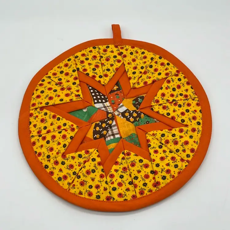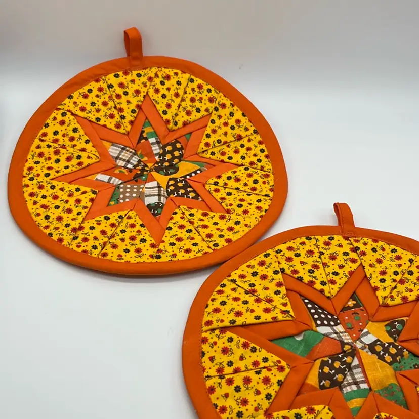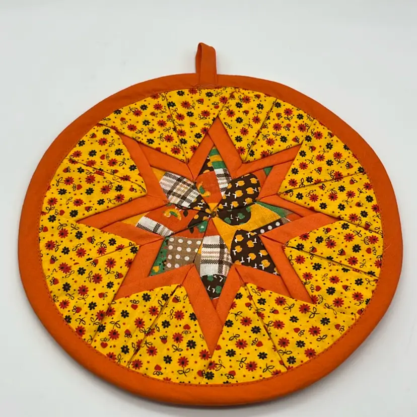 Great condition! Clean and beautifully stitched! Vibrant orange in colors! No stains Approx: 8.5” d