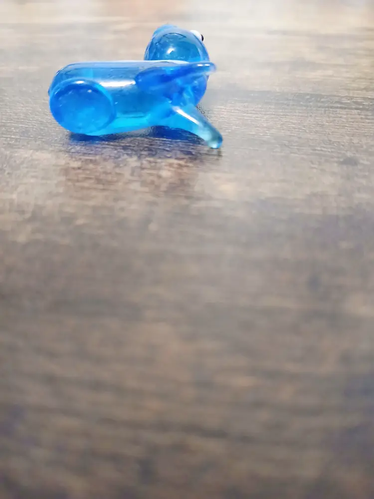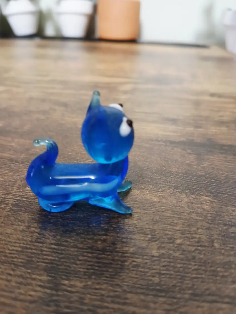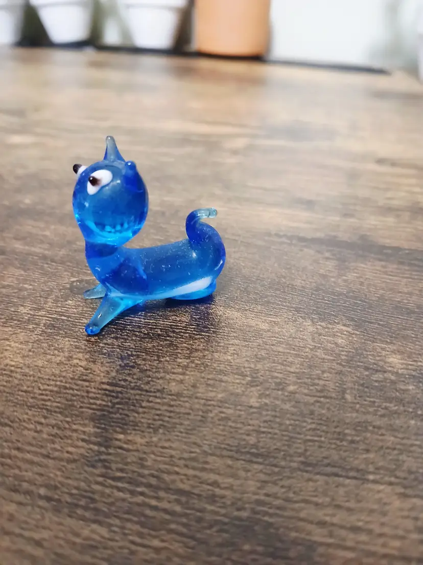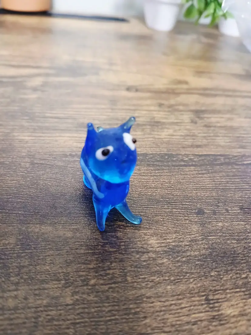 Add a whimsical touch to your decor with this quirky blue glass cat figurine. Perfect for collectors or as a playful accent piece, this little feline brings a splash of color and charm to any space. Measures approximately 1 1/2 inches tall.