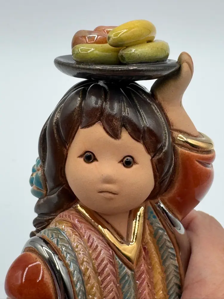 Design features: Stylized Girl holding a plate of fruit on her head.