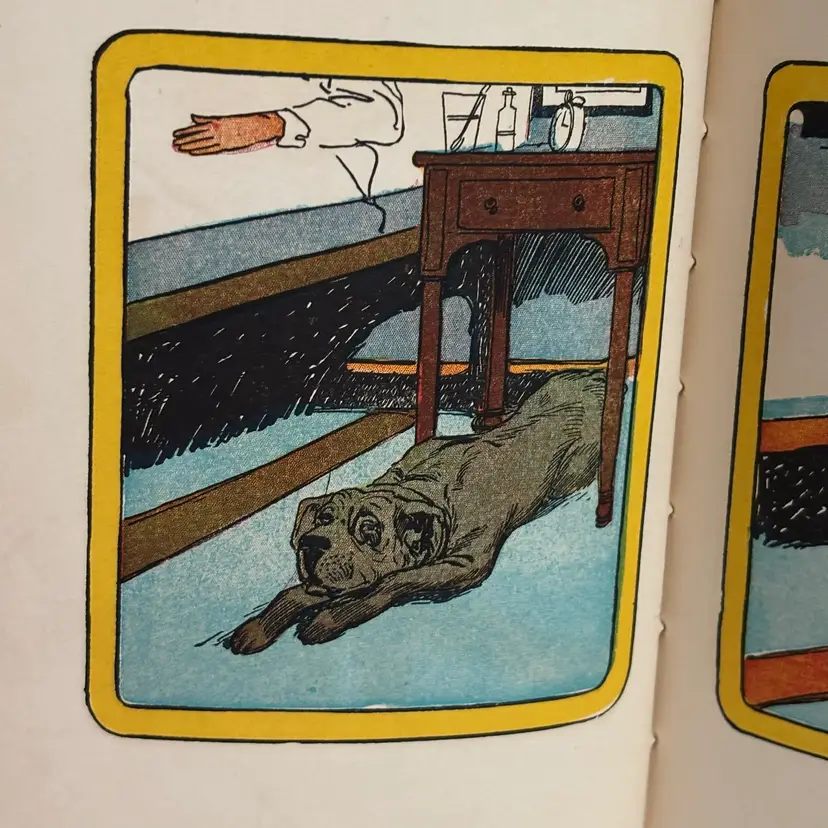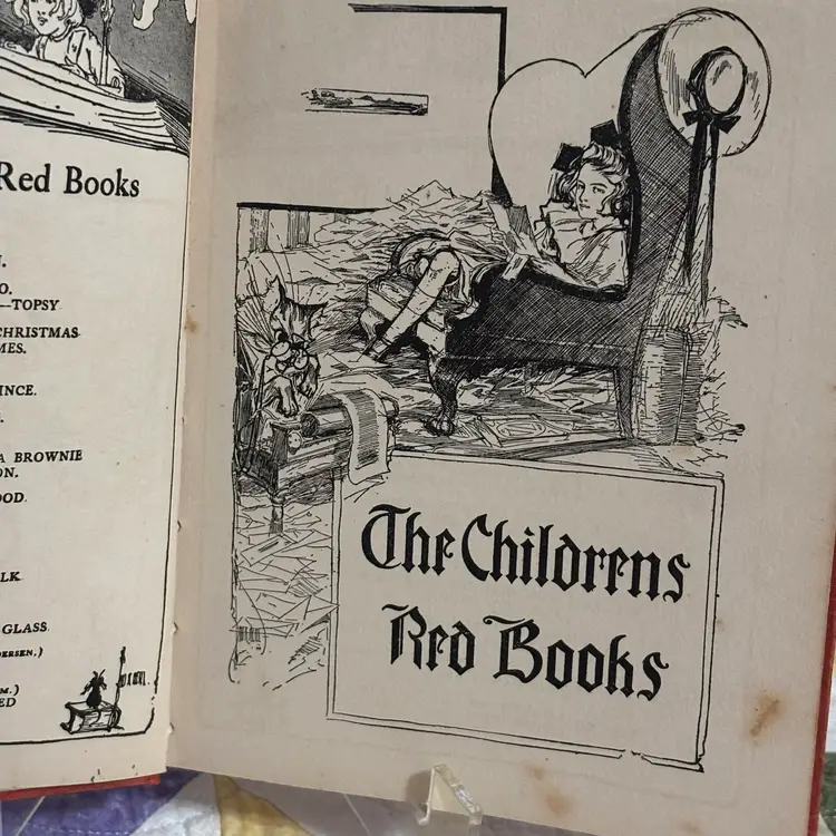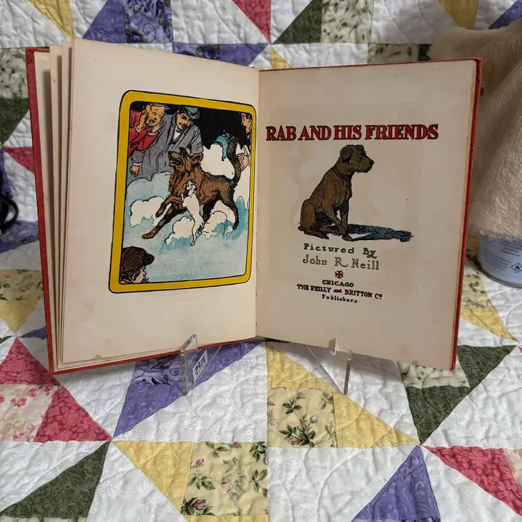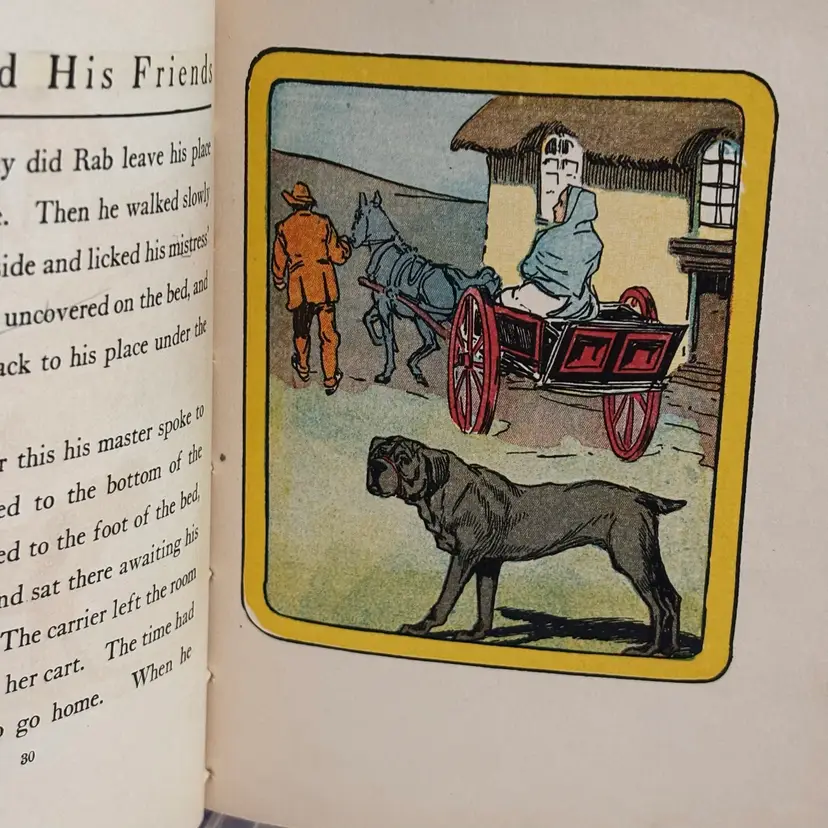From the Children’s Red Book series, we will follow Rab and his owner and his ill wife and the theme explores devotion, loyalty and loss as he experiences the death of his owners. Small worn spot on top of spine. Gift in 1913 written inside.