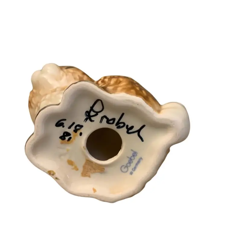 Marked Goebel. Signed 6/18/81 can’t read signature. No chips or cracks. 2 3/4 x 2 1/4 x 3 1/4 inches