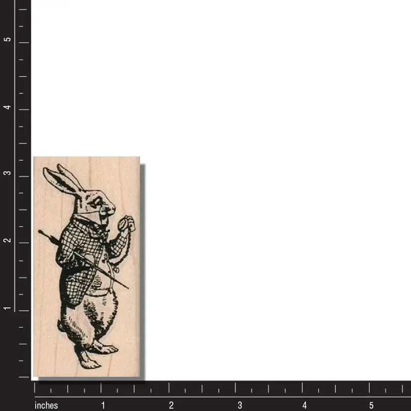 Rabbit Looking At Pocket Watch Rubber Stamp Size: 1-3/4 x 3 inches Wood Mounted - Pink Rubber Handmade Brand new/unused • Perfect for card making, gift tags, scrapbooking, journaling and crafts • First purchase on District? Use this code for $5 off a $10 min purchase. ALOHAG34
