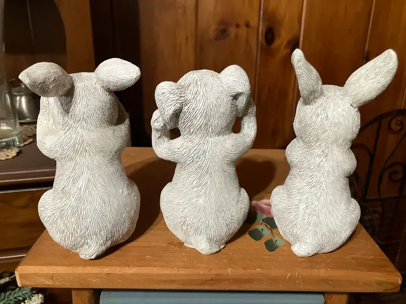 Rabbits set of 3 See no evil, Hear no evil & Speak no evil. Resin - 5-1/2” tall.