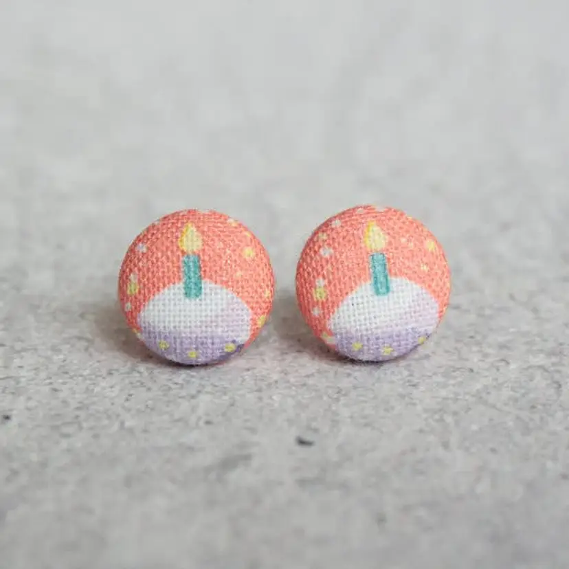 Recommended for girls ages 5+ or ladies who enjoy small ear candy. Fabric hand stretched over aluminum dome.
