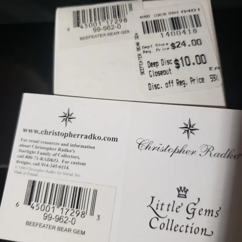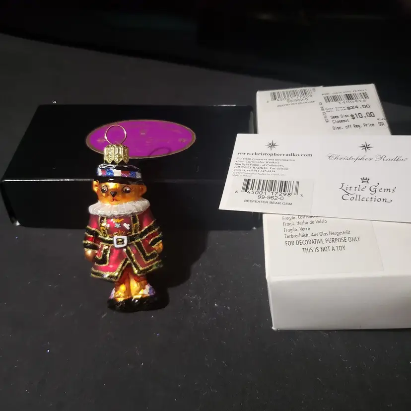 Brand: Christopher Radko Type: Ornament Shape: Bear Occasion: Retirement Collection: Ornaments Set Includes: Lights MPN: 0014450 Country/Region of Manufacture: Poland Franchise: Beefeater Subject: Bear Vintage: Yes