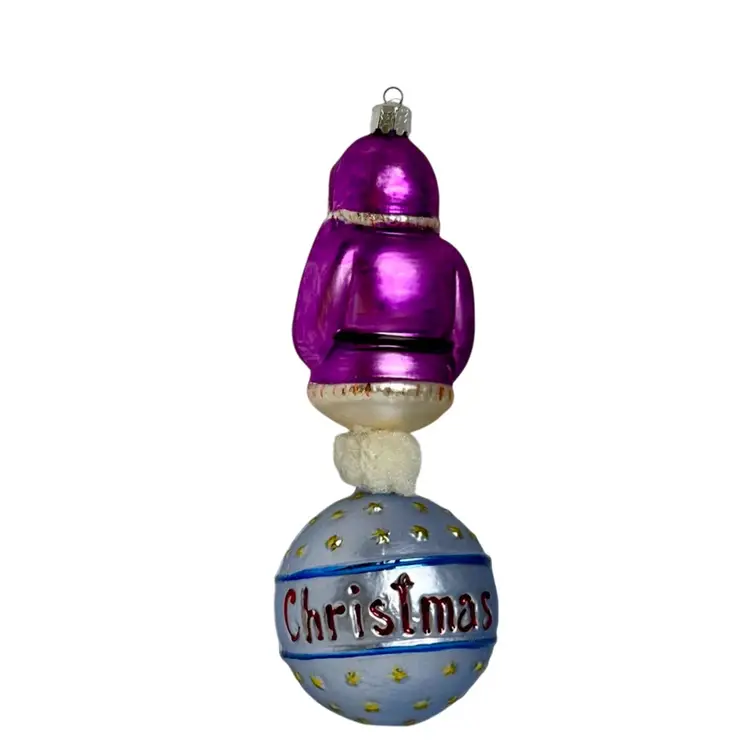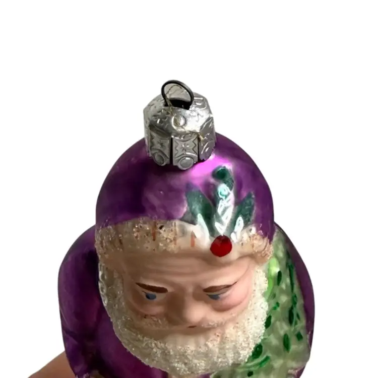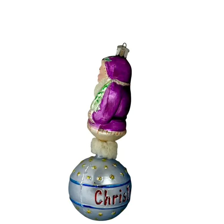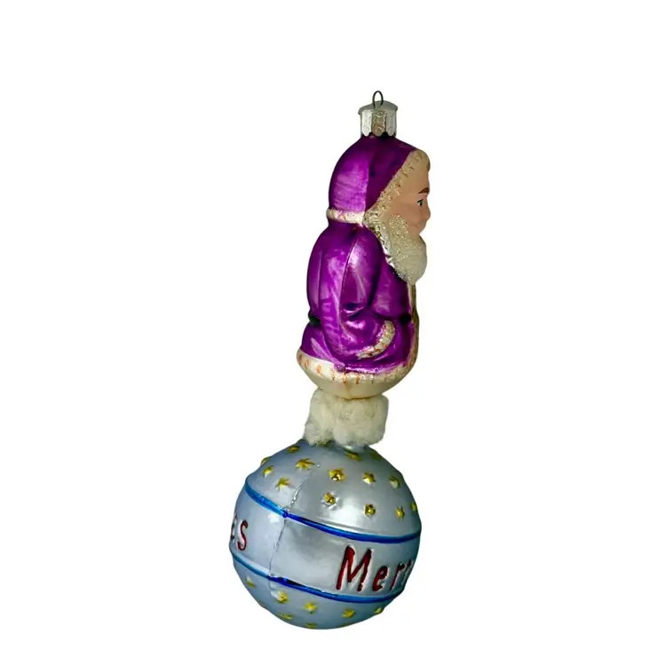 Radko Seasons Greetings Santa Ball Drop Hand painted Glass Christmas Ornament.