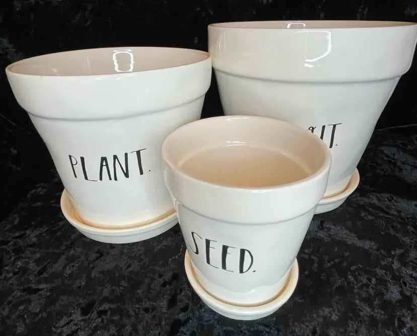 Exclusive Rae Dunn Ceramic by Magenta- Uniquely Designed by San Francisco Bay Area Artist Rae Dunn. The black Stem Print Planters each are hand crafted and hand painted so each item is unique and have slight imperfections including paint runs, uneven paint and lettering, excess material, pin dots, marks, kinks, bubbles, scratches, smudges, glazed over flaws and other imperfections which occur during manufacturing. Every piece of her work is handcrafted and distinctive and that’s what makes her products one of a kind. We offer them best price around, that is if you can find them anywhere else.