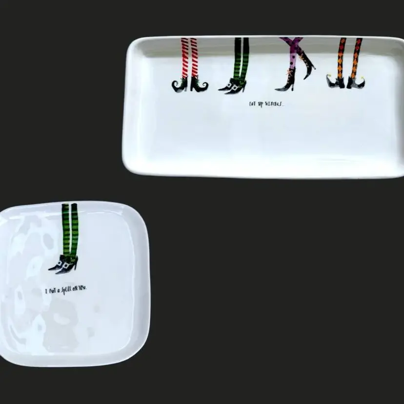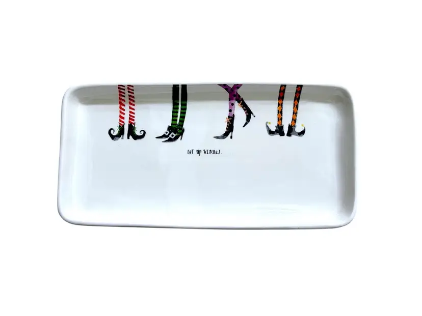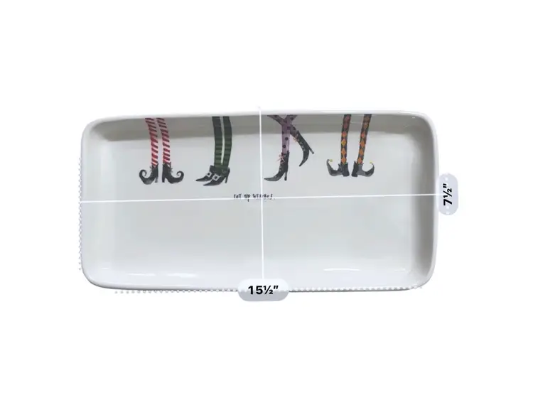 • Includes 15.5"x7.5" tray & square plate • Features "Eat Up Witches" & "I Put A Spell On You" • Glossy ceramic finish