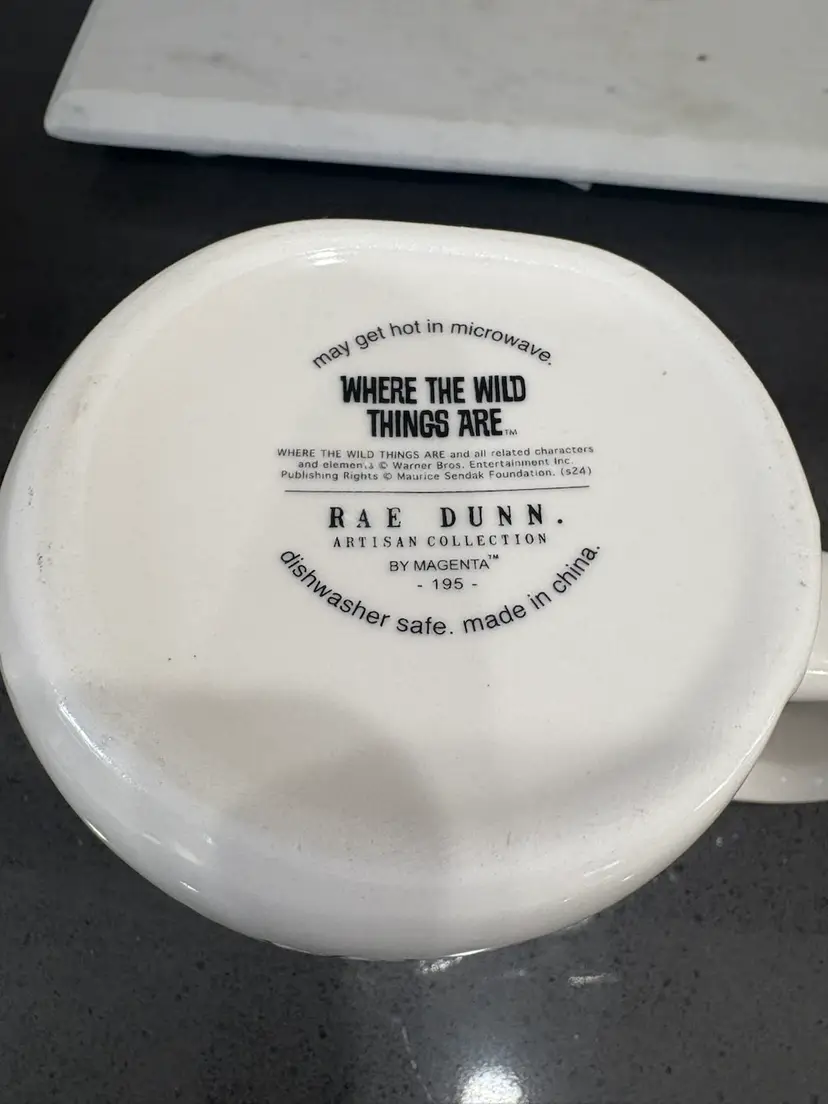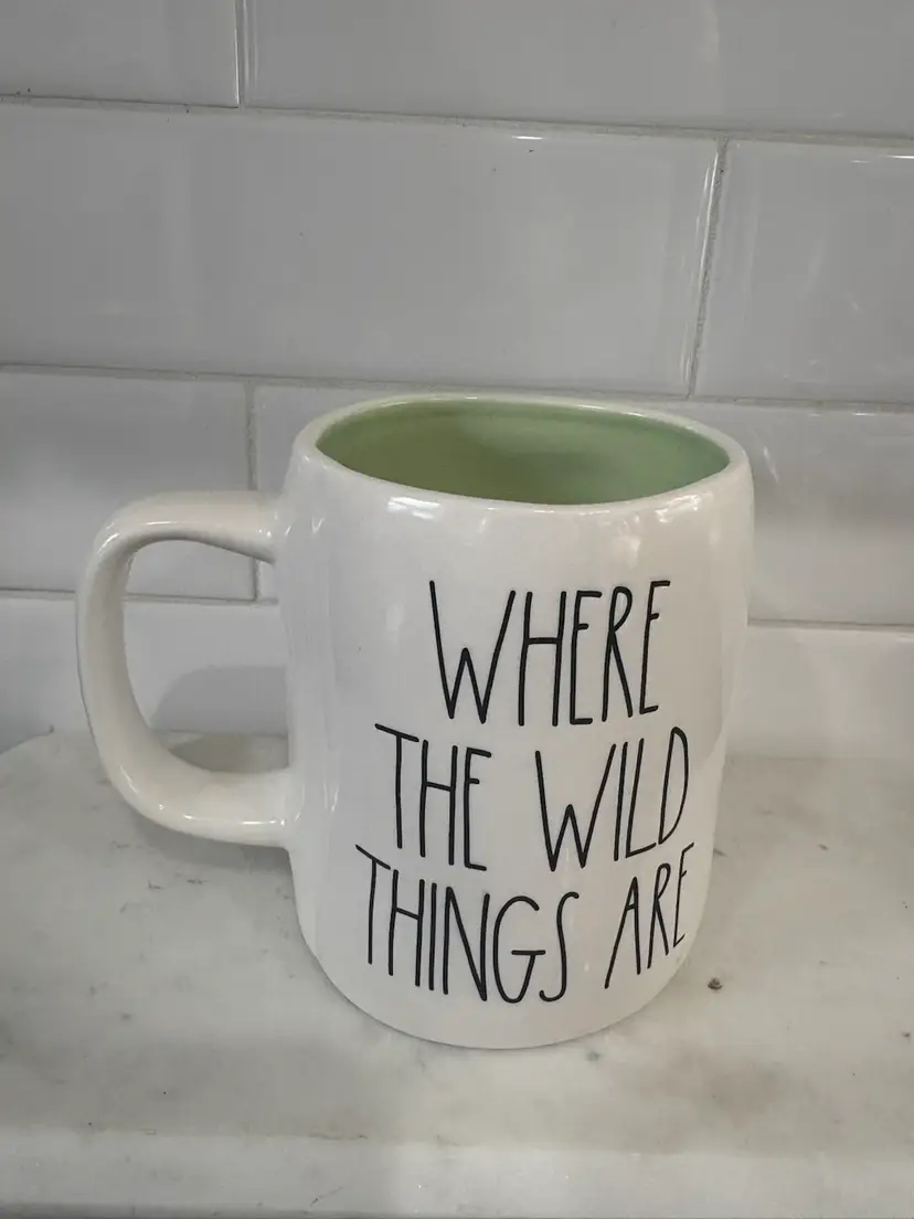 Rae Dunn Ivory W/Blk LL”WHERE THE WILD THINGS ARE”Double Sided Mug
