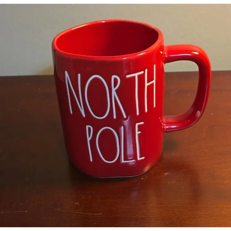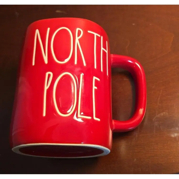 Rae Dunn Red NORTH POLE Coffee Mug Gently pre-owned No chips or cracks Good condition Dishwasher safe